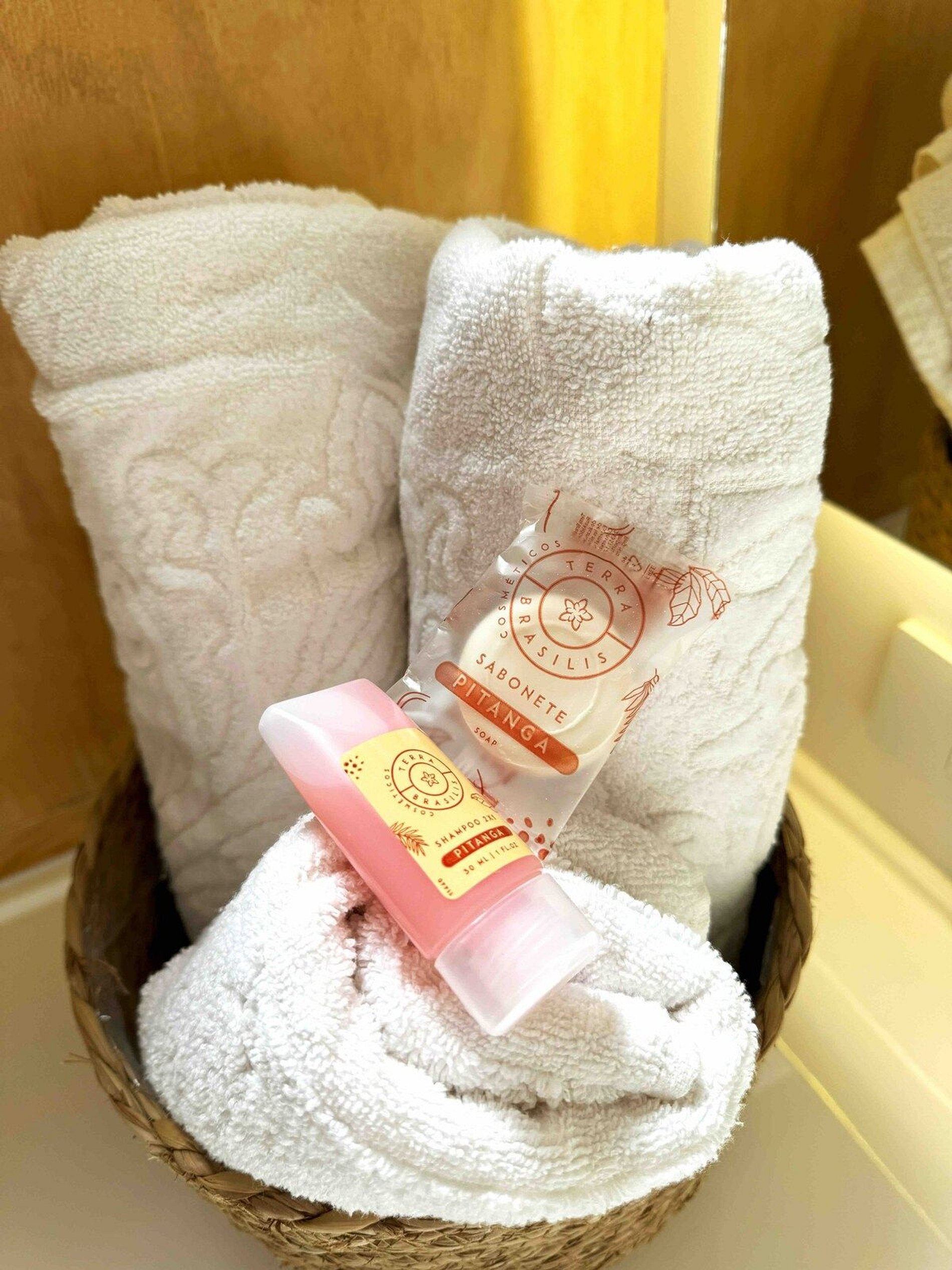 * São disponibilizadas uma toalha de banho por hóspede e uma toalha de rosto por banheiro, além de lençóis para a quantidade de hóspedes indicada. Trocas de enxoval podem ser solicitadas pelo valor de uma taxa de limpeza.