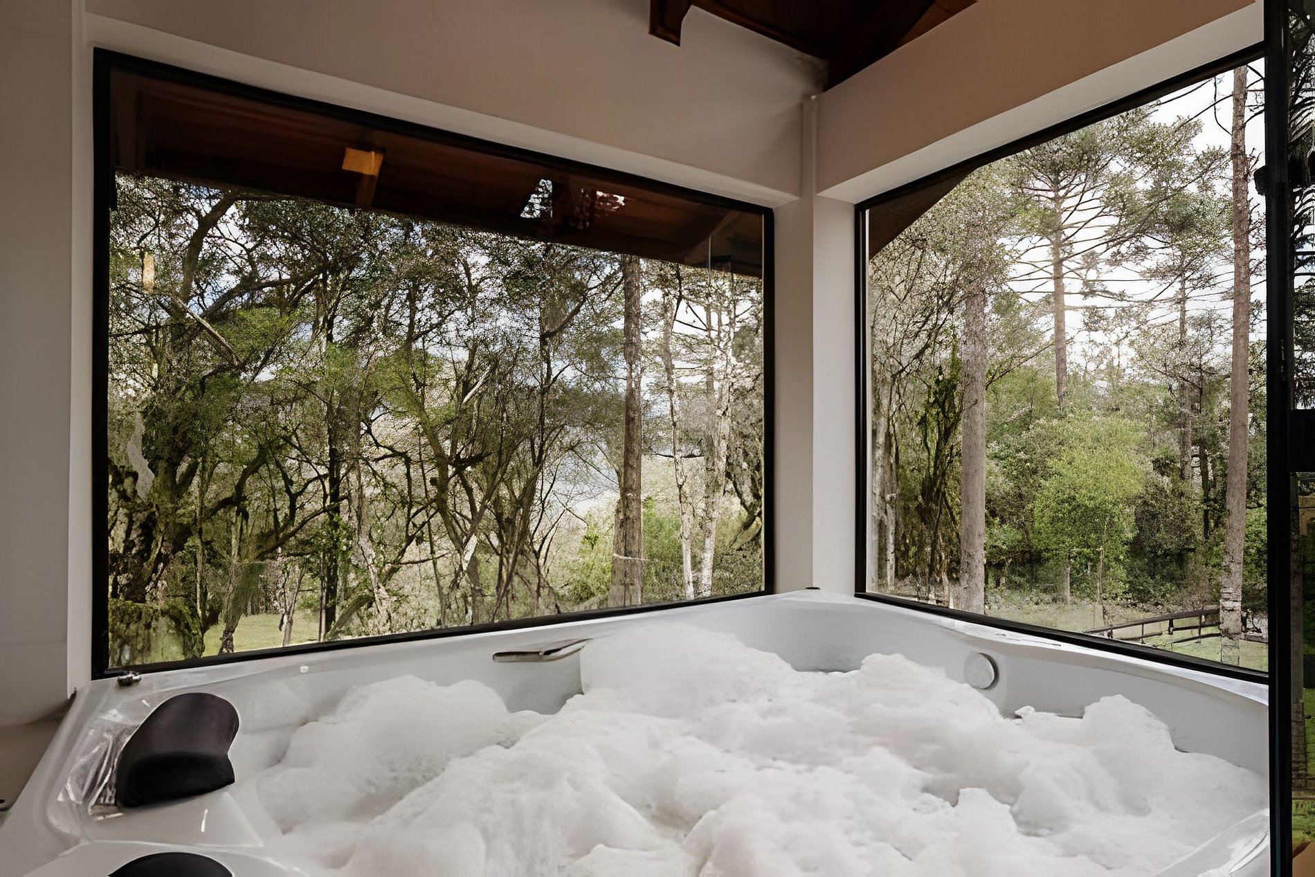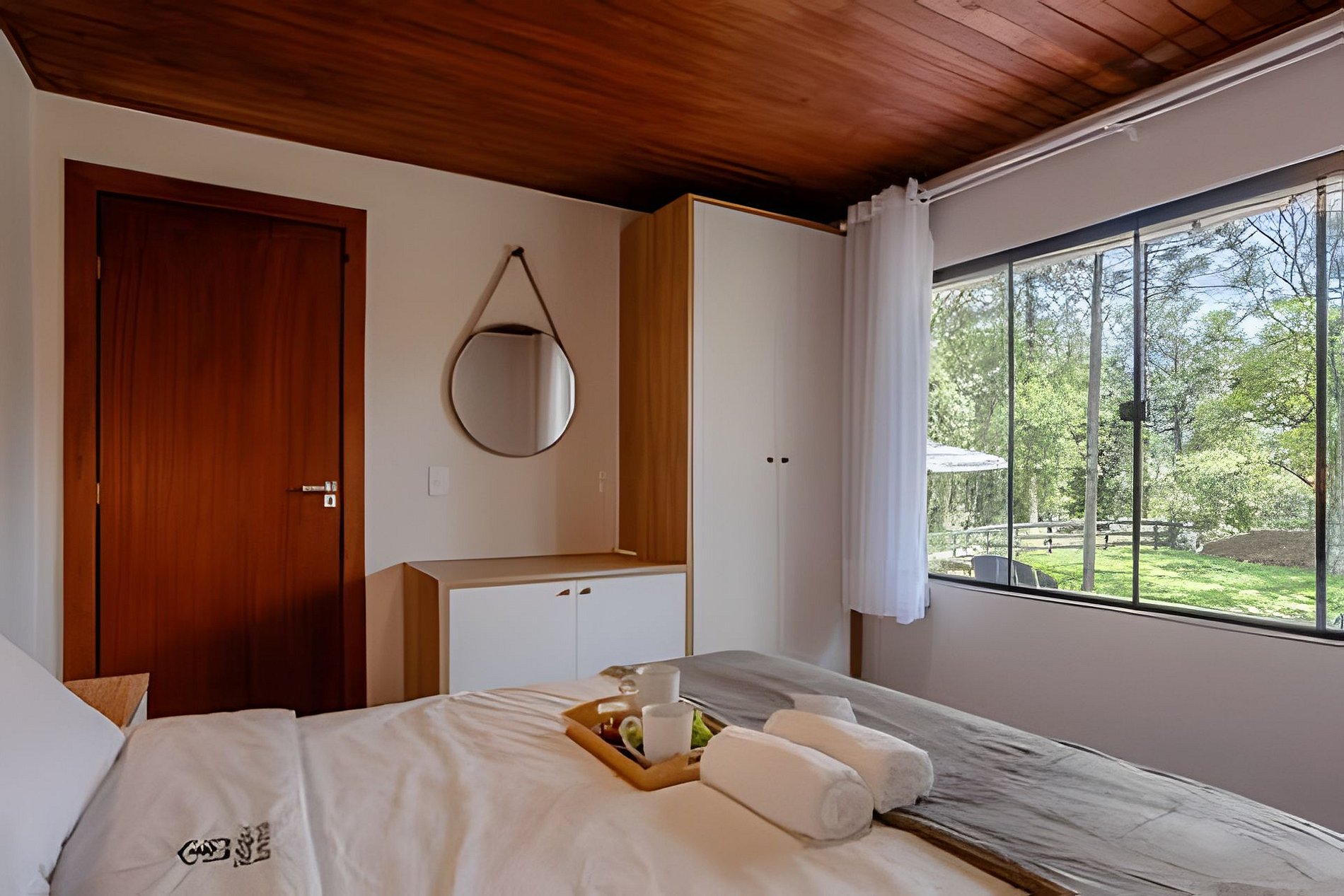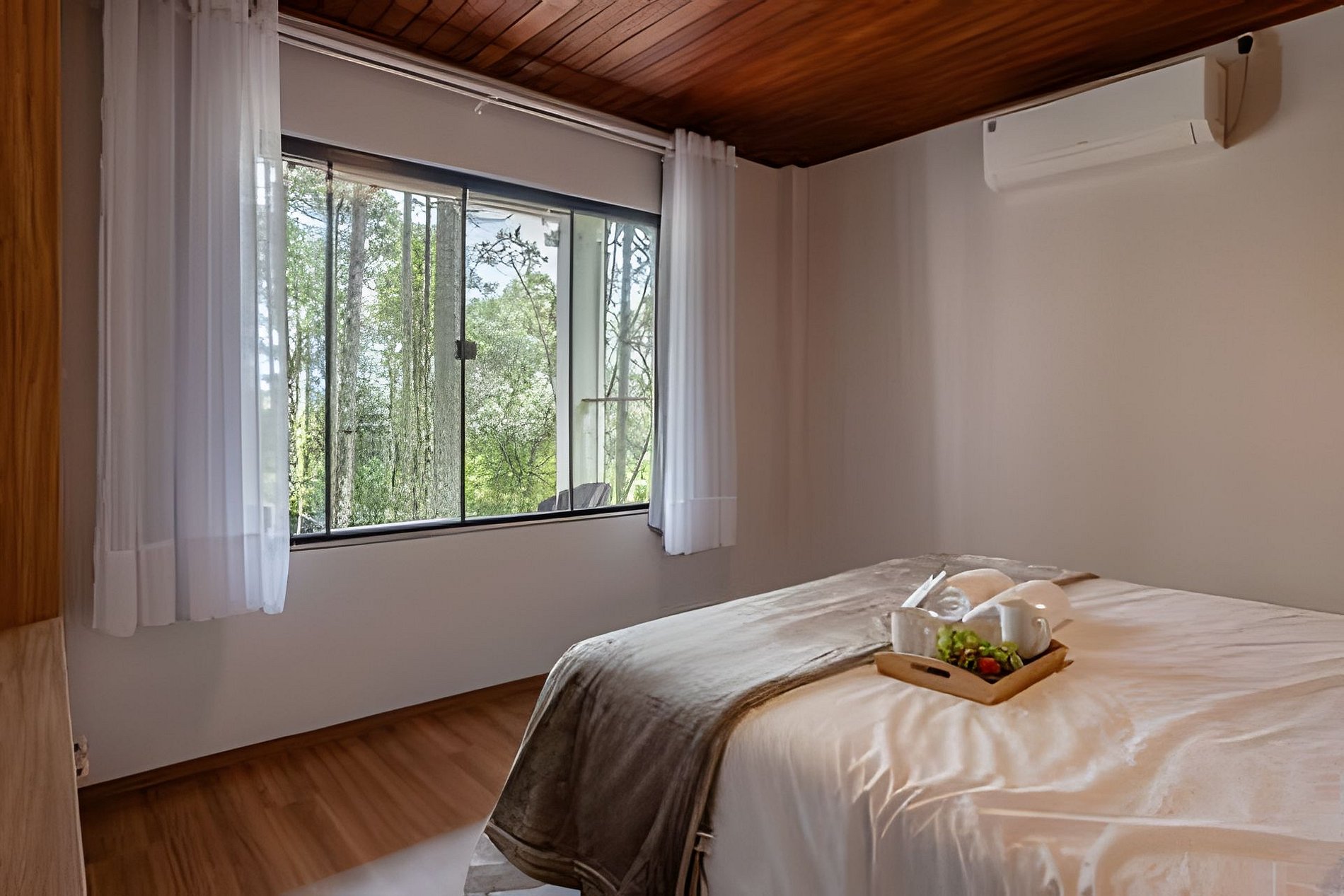Para o conforto de nossos hóspedes, a Cabana possui: - 2 Quartos com cama de casal, cortina, arara para roupas e ar-condicionado quente e frio; - Sala de estar com sofá, cortina, smart TV de tela plana e lareira interna; - Cozinha completa com geladeira, fogão, micro-ondas, sanduicheira, liquidificador, taças de vinho, panelas, louças e utensílios; - Sala de jantar com mesa e 5 cadeiras; - 2 Banheiros, sendo 1 na Suíte; - 1 Banheira - Amplo Deck; - Roupas de cama e banho de qualidade hoteleira (roupas de cama e toalhas extras são cobradoas a parte); - Wi-fi disponível (Starlink); - Vaga de garagem descoberta. * A limpeza inclusa no valor é realizada somente no check-out. Se o hóspede desejar uma limpeza extra durante a estadia, será cobrada uma nova taxa de limpeza. * São disponibilizadas uma toalha de banho por hóspede e uma toalha de rosto por banheiro, além de lençóis para a quantidade de hóspedes indicada. Trocas de enxoval podem ser solicitadas pelo valor de meia taxa de limpeza. (Consulte o anfitrião para mais detalhes). Venha, relaxe, divirta-se e não se preocupe com mais nada :)