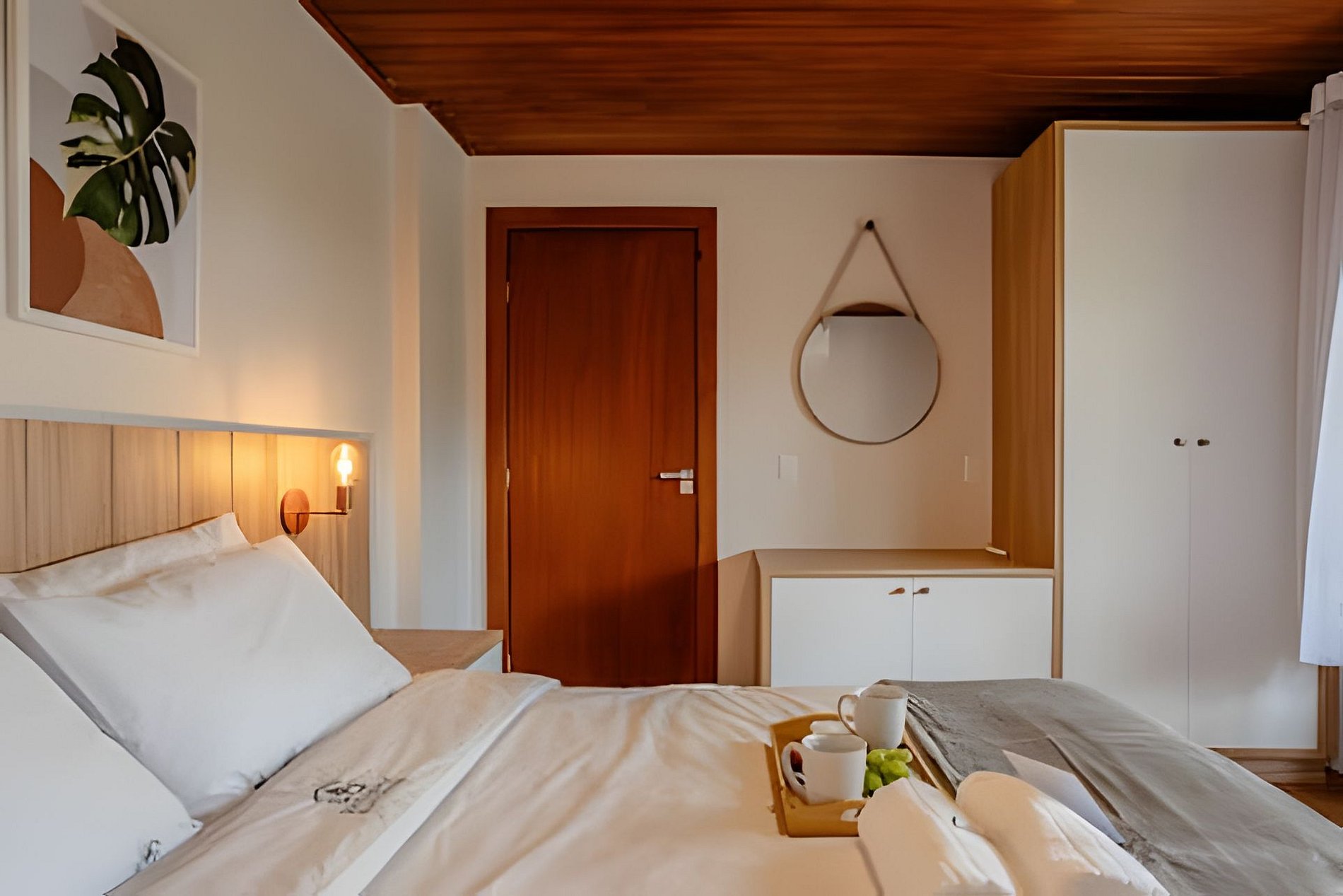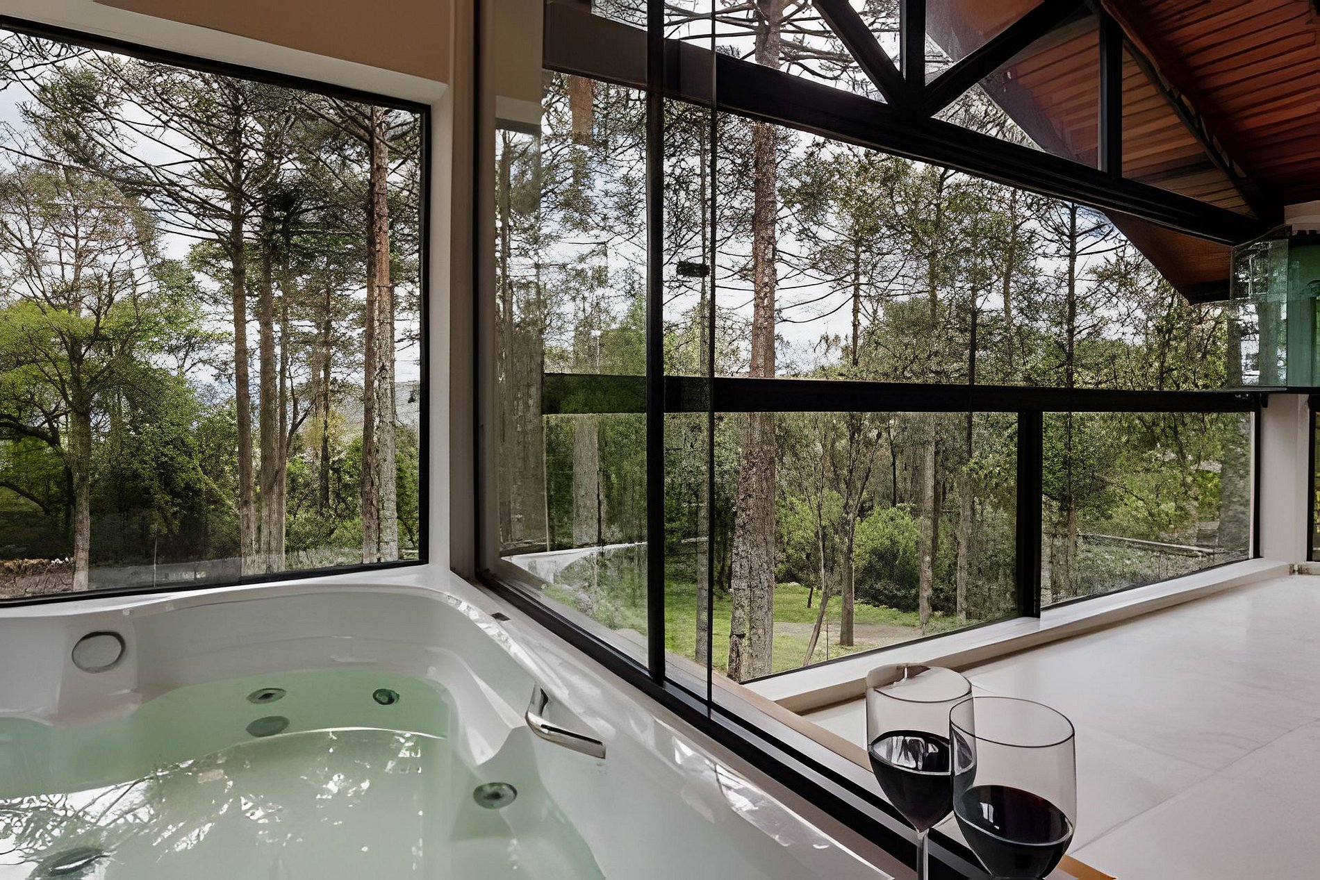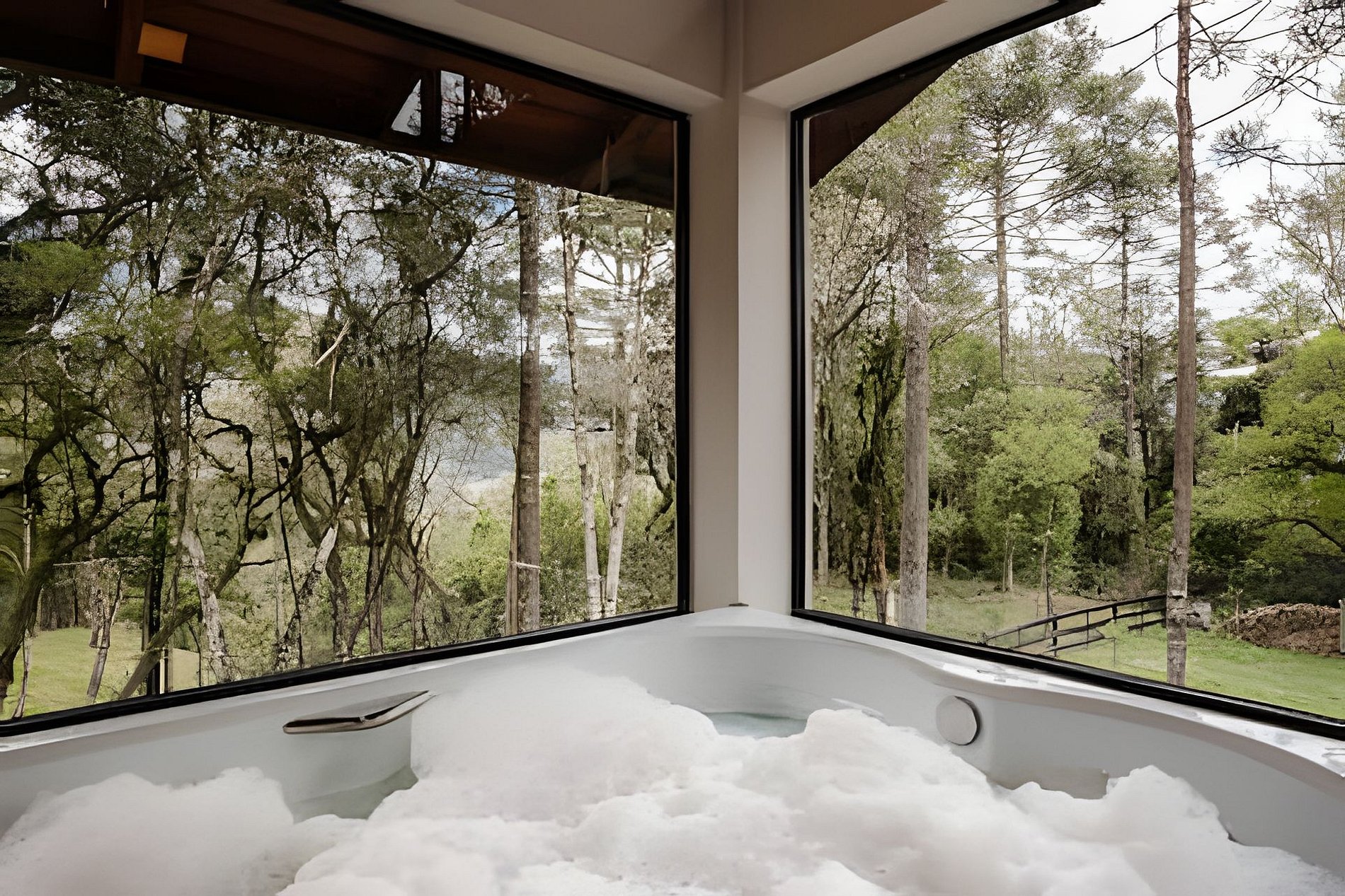 Para o conforto de nossos hóspedes, a Cabana possui: - 2 Quartos com cama de casal, cortina, arara para roupas e ar-condicionado quente e frio; - Sala de estar com sofá, cortina, smart TV de tela plana e lareira interna; - Cozinha completa com geladeira, fogão, micro-ondas, sanduicheira, liquidificador, taças de vinho, panelas, louças e utensílios; - Sala de jantar com mesa e 5 cadeiras; - 2 Banheiros, sendo 1 na Suíte; - 1 Banheira - Amplo Deck; - Roupas de cama e banho de qualidade hoteleira (roupas de cama e toalhas extras são cobradoas a parte); - Wi-fi disponível (Starlink); - Vaga de garagem descoberta. * A limpeza inclusa no valor é realizada somente no check-out. Se o hóspede desejar uma limpeza extra durante a estadia, será cobrada uma nova taxa de limpeza. * São disponibilizadas uma toalha de banho por hóspede e uma toalha de rosto por banheiro, além de lençóis para a quantidade de hóspedes indicada. Trocas de enxoval podem ser solicitadas pelo valor de meia taxa de limpeza. (Consulte o anfitrião para mais detalhes). Venha, relaxe, divirta-se e não se preocupe com mais nada :)