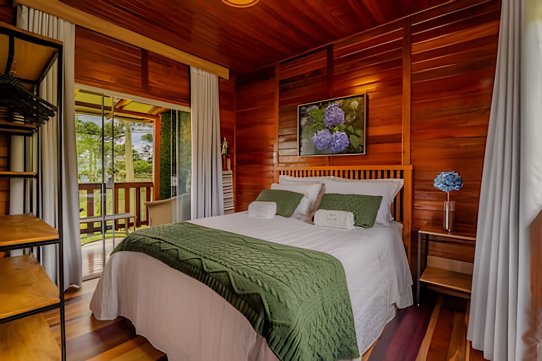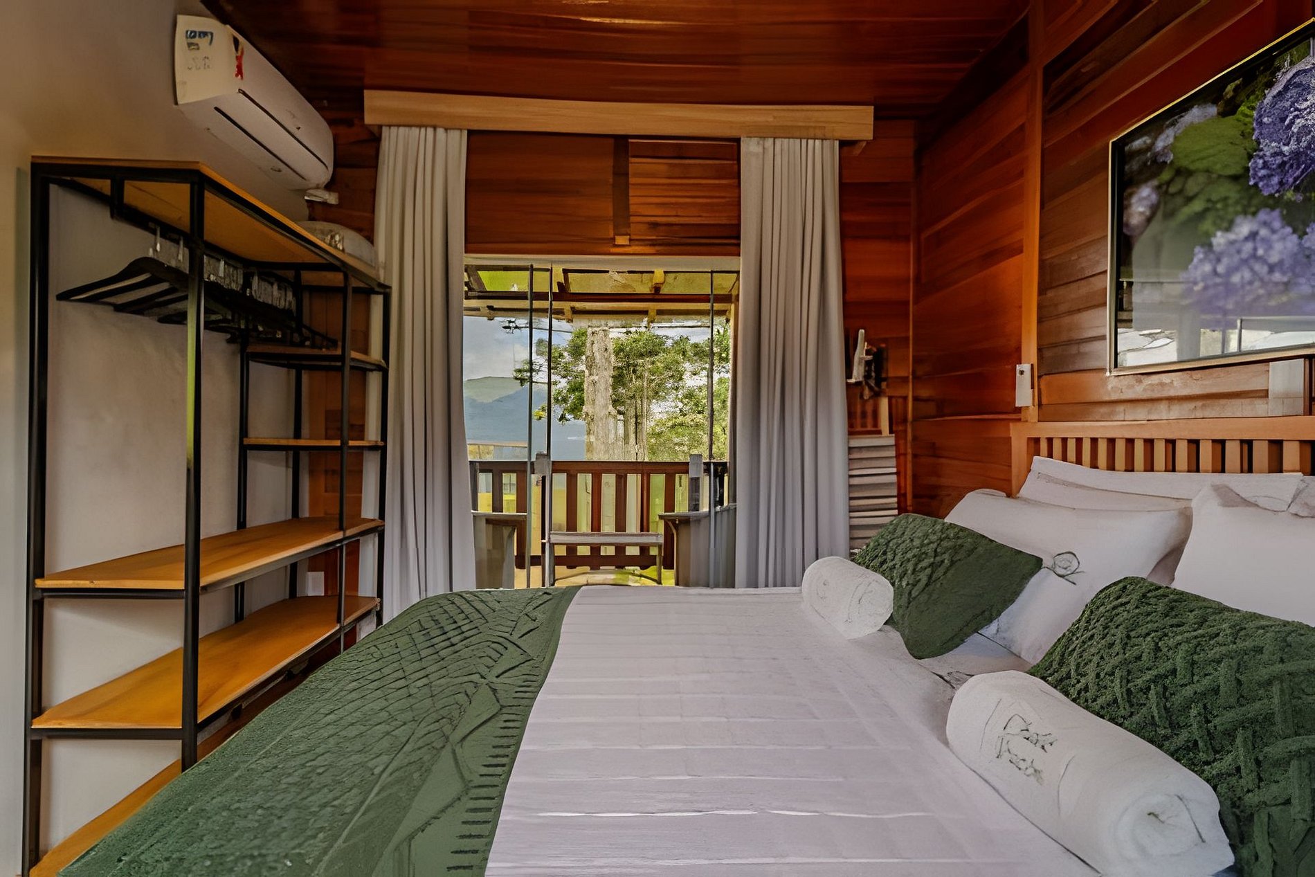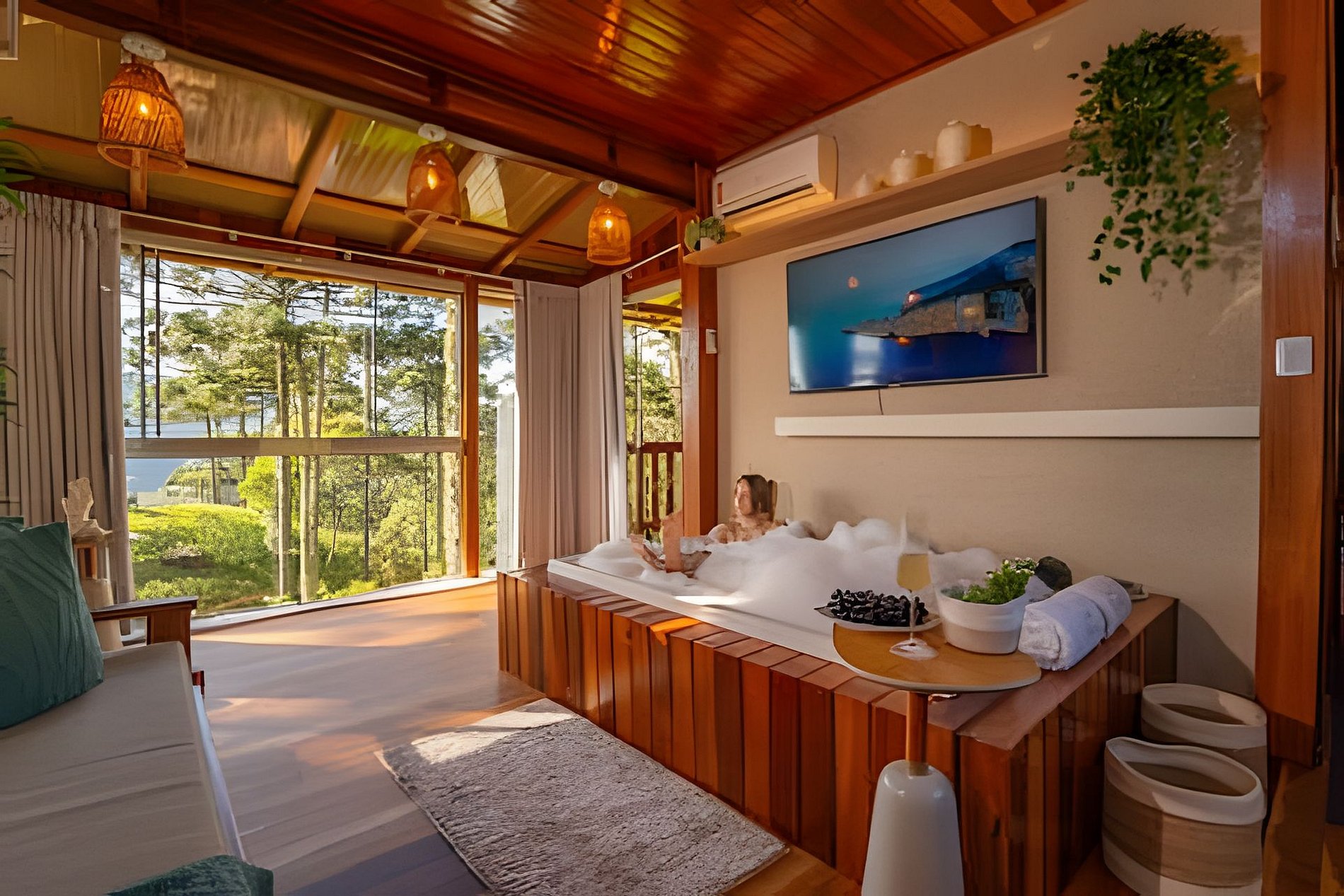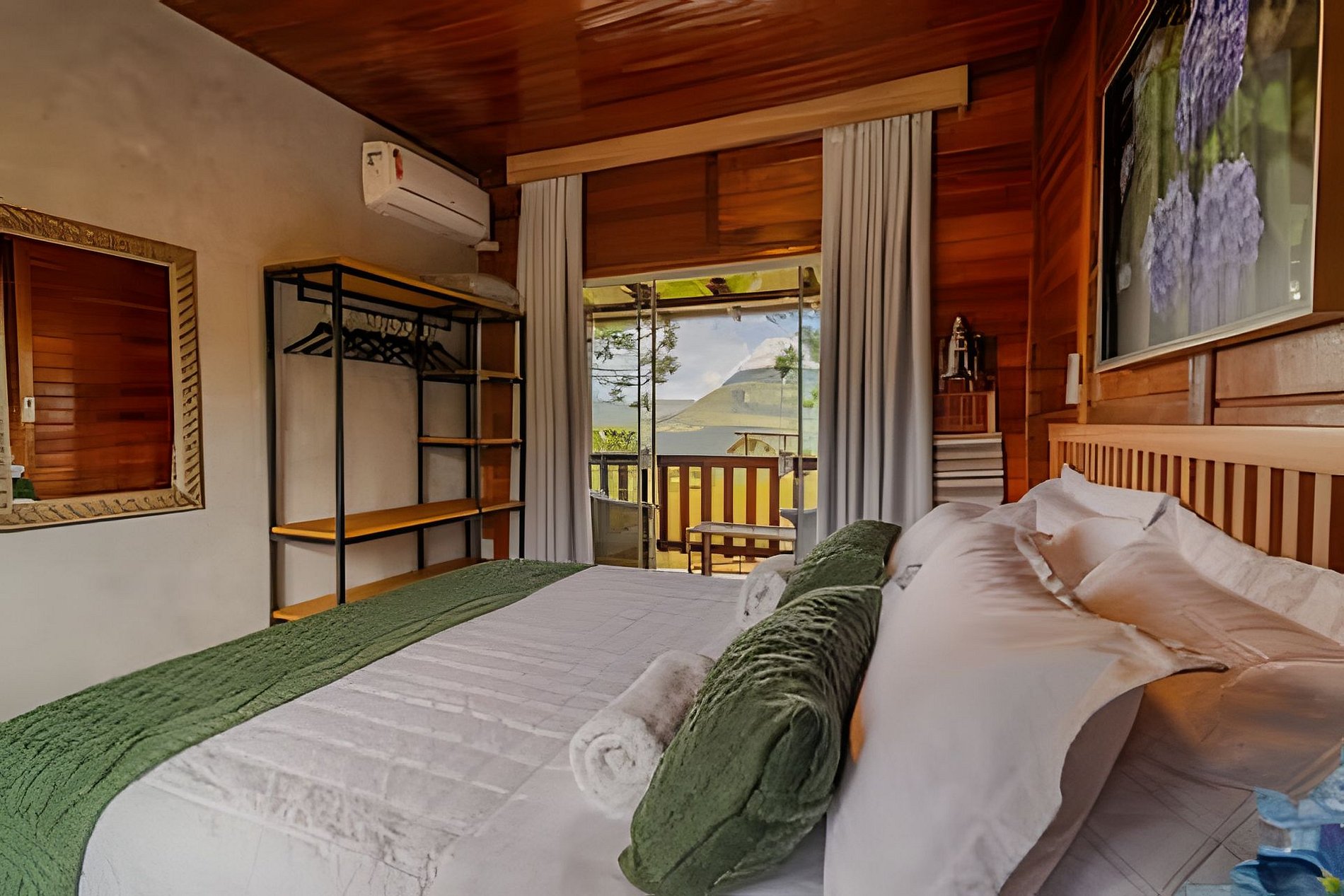 Com uma hidromassagem posicionada estrategicamente para que você desfrute de uma vista incrível das montanhas, o chalé oferece o cenário perfeito para relaxar, celebrar o amor e se reconectar com a natureza. O ambiente combina charme rústico com toques modernos, criando um clima acolhedor e intimista. Grandes janelas permitem que a luz natural invada o espaço e destacam o espetáculo da paisagem a qualquer hora do dia — seja no nascer do sol, entre as nuvens da tarde ou sob o céu estrelado. Para tornar sua estadia ainda mais especial, o chalé foi pensado para envolver você em conforto e tranquilidade desde o primeiro instante. A banheira de hidromassagem com cromoterapia convida a desacelerar e sentir cada momento, enquanto as luzes suaves criam um clima de relaxamento profundo. Na varanda, uma rede macia espera por você — perfeita para se aninhar com um bom livro enquanto o fim de tarde pinta o céu com tons dourados. Uma mesa de refeições com vista para as montanhas transforma cada café da manhã, brinde ou jantar em uma experiência única, cercada pela beleza da natureza. E quando a noite chega, a cama confortável garante um descanso acolhedor, daqueles que renovam corpo e alma. Cada detalhe foi pensado para que você se sinta abraçado pelo ambiente e viva momentos de calma, carinho e conexão. O Chalé interio é privativo aos hóspedes. Estaremos sempre dispostos a auxiliar em casos de necessidade. Auxiliamos com dicas de pontos turísticos, restaurantes e serviços na cidade. Conte conosco sempre que necessário.