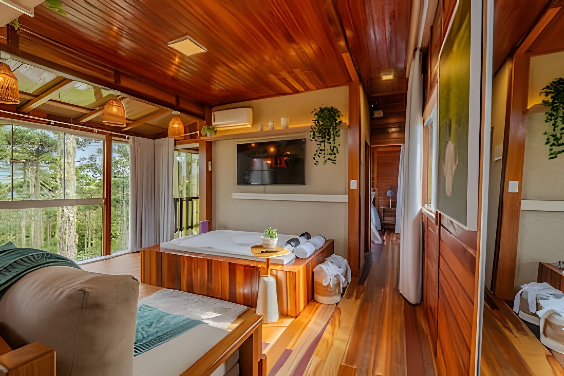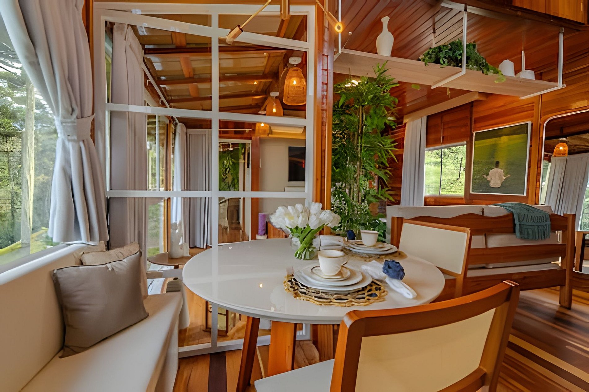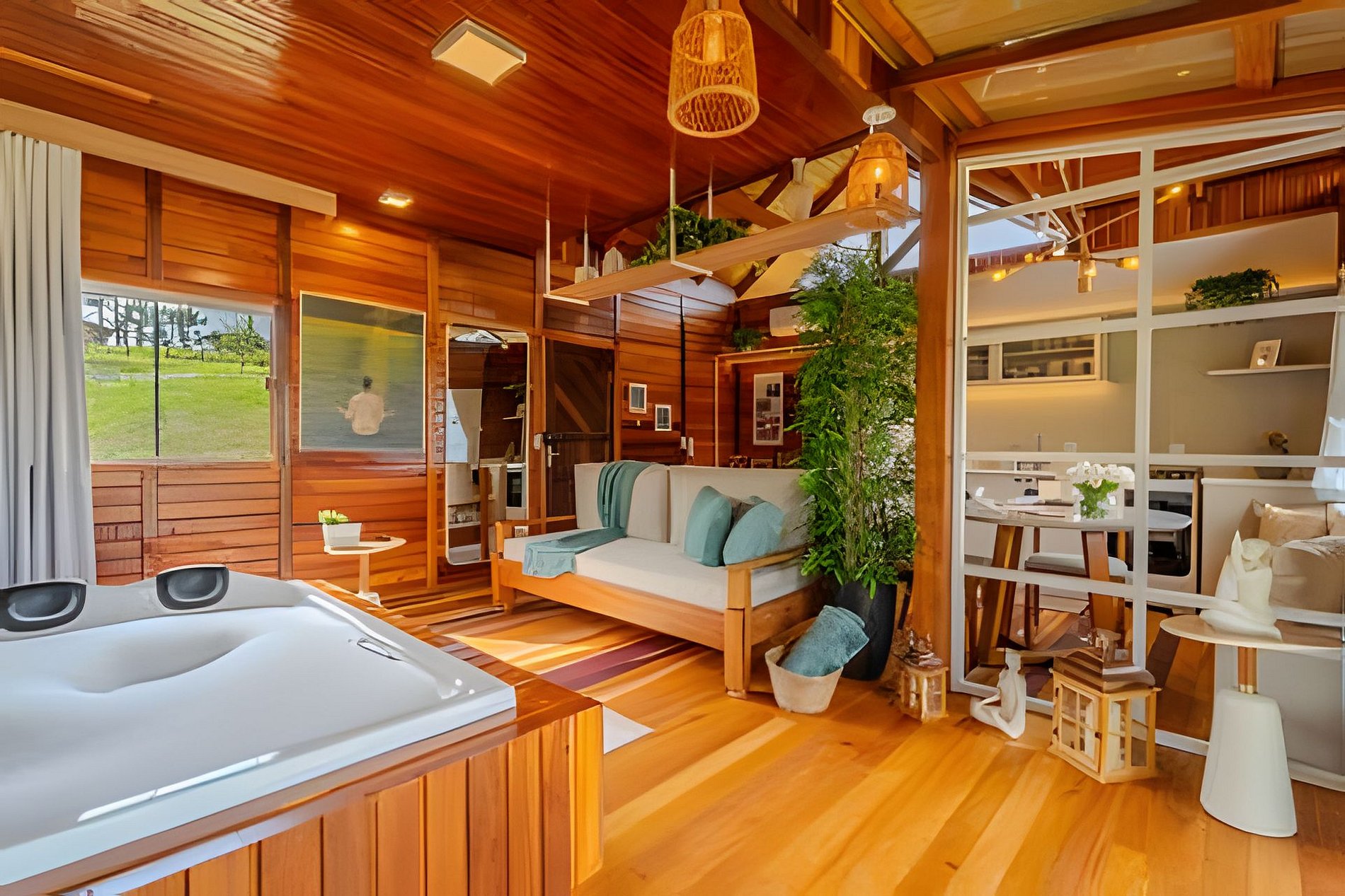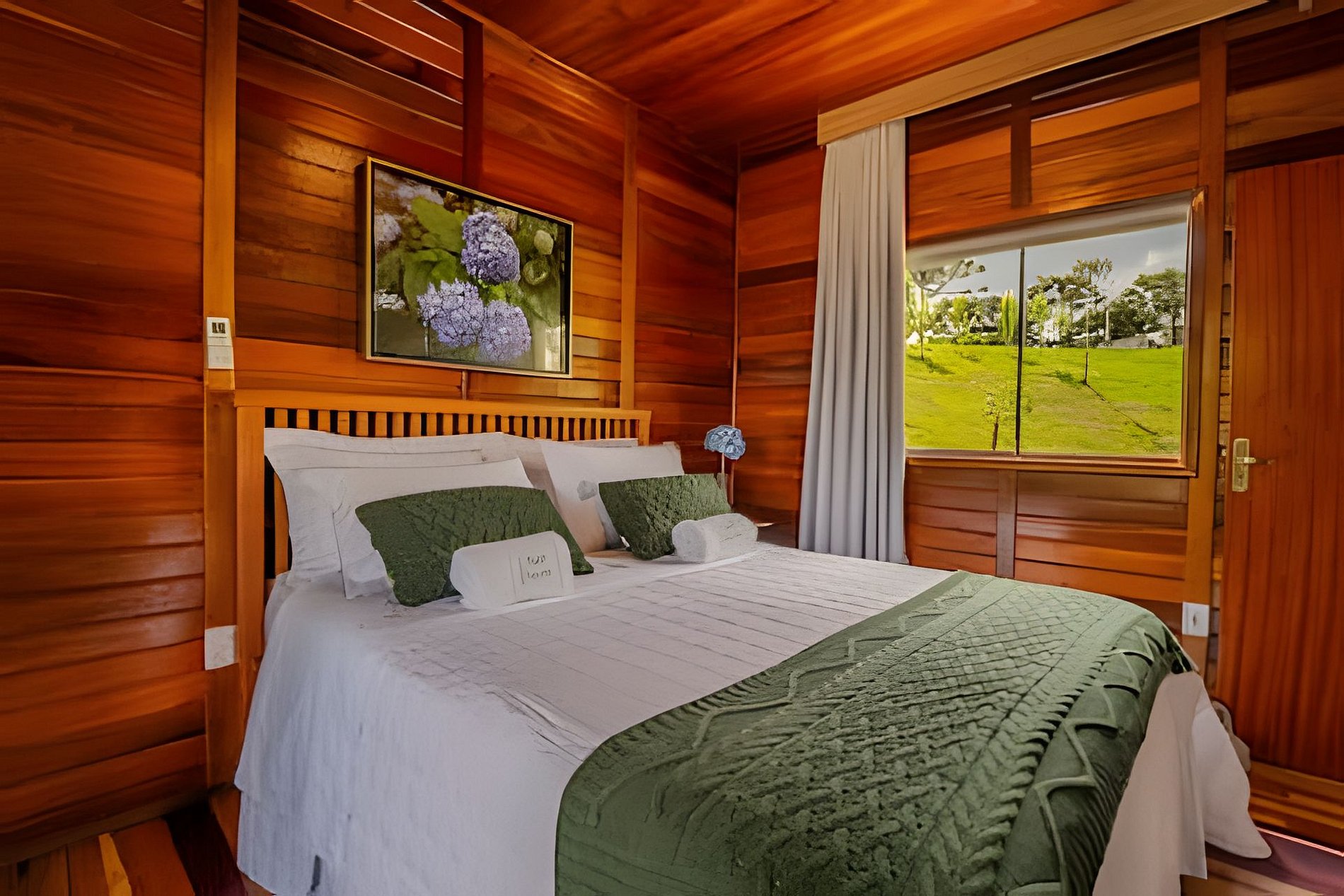 Com uma hidromassagem posicionada estrategicamente para que você desfrute de uma vista incrível das montanhas, o chalé oferece o cenário perfeito para relaxar, celebrar o amor e se reconectar com a natureza. O ambiente combina charme rústico com toques modernos, criando um clima acolhedor e intimista. Grandes janelas permitem que a luz natural invada o espaço e destacam o espetáculo da paisagem a qualquer hora do dia — seja no nascer do sol, entre as nuvens da tarde ou sob o céu estrelado. Para tornar sua estadia ainda mais especial, o chalé foi pensado para envolver você em conforto e tranquilidade desde o primeiro instante. A banheira de hidromassagem com cromoterapia convida a desacelerar e sentir cada momento, enquanto as luzes suaves criam um clima de relaxamento profundo. Na varanda, uma rede macia espera por você — perfeita para se aninhar com um bom livro enquanto o fim de tarde pinta o céu com tons dourados. Uma mesa de refeições com vista para as montanhas transforma cada café da manhã, brinde ou jantar em uma experiência única, cercada pela beleza da natureza. E quando a noite chega, a cama confortável garante um descanso acolhedor, daqueles que renovam corpo e alma. Cada detalhe foi pensado para que você se sinta abraçado pelo ambiente e viva momentos de calma, carinho e conexão. O Chalé interio é privativo aos hóspedes. Estaremos sempre dispostos a auxiliar em casos de necessidade. Auxiliamos com dicas de pontos turísticos, restaurantes e serviços na cidade. Conte conosco sempre que necessário.