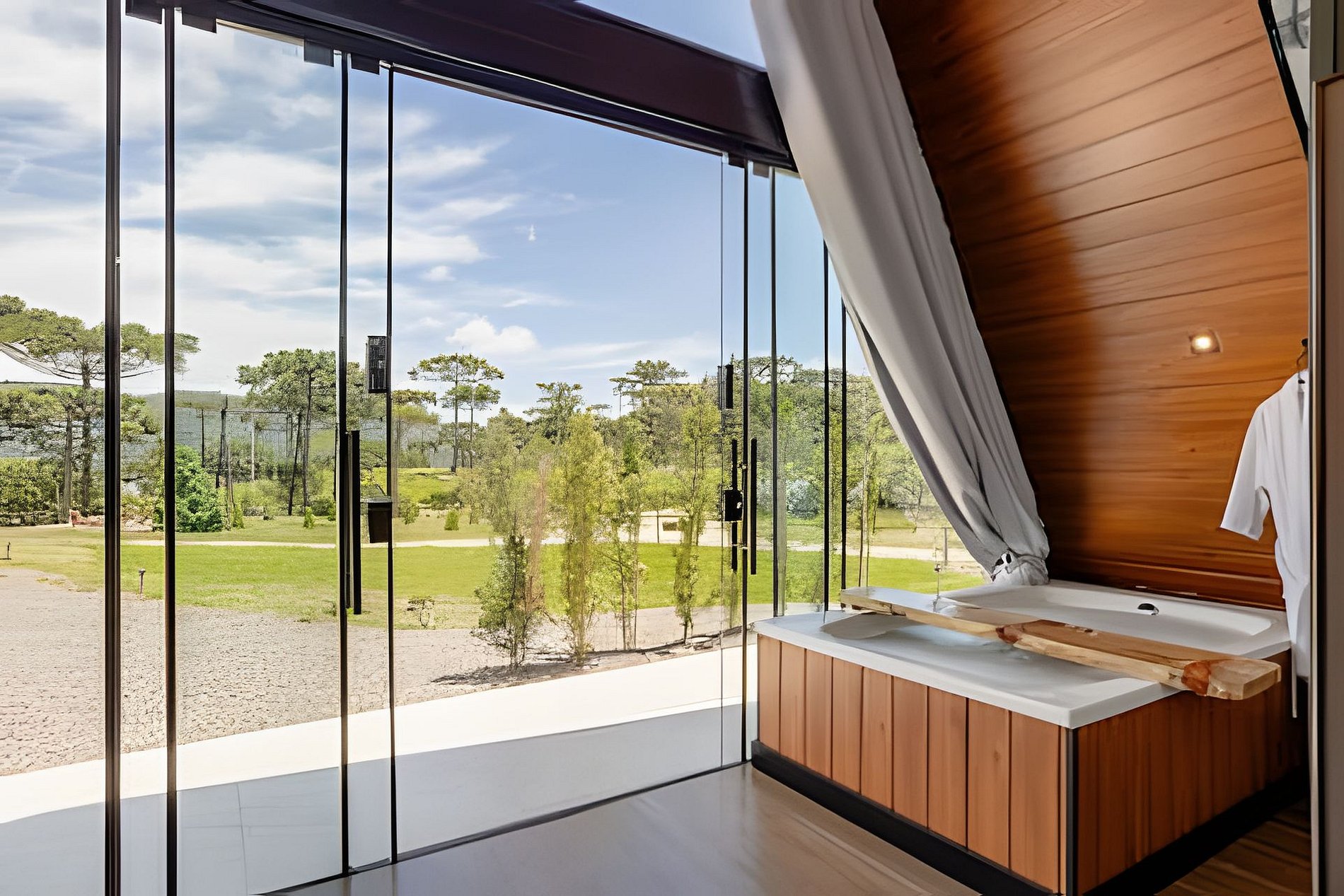 Para um relaxamento completo, o chalé dispôe de uma banheira de hidromassagem. Na área externa há um espaço com fogo de chão, ideial para se aquecer, assar marshmallow e desfrutar de um momento tranquilo ao ar livre e contemplar o céu estrelado. Oferecemos um delicioso café da manhã, que pode ser contratado a parte, preparado com ingredientes frescons e selecionados. Para os casais apaixonados, pode ser contratao a parte uma decoração romântica para aquele momento especial a dois.