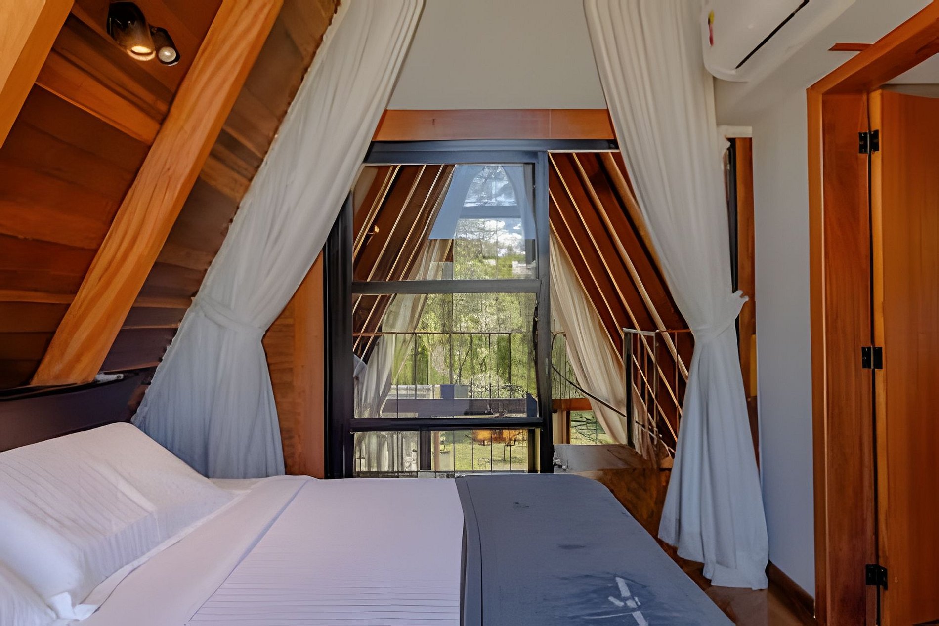 - 1 Quarto com cama de casal, cortina, TV e ar-condicionado;