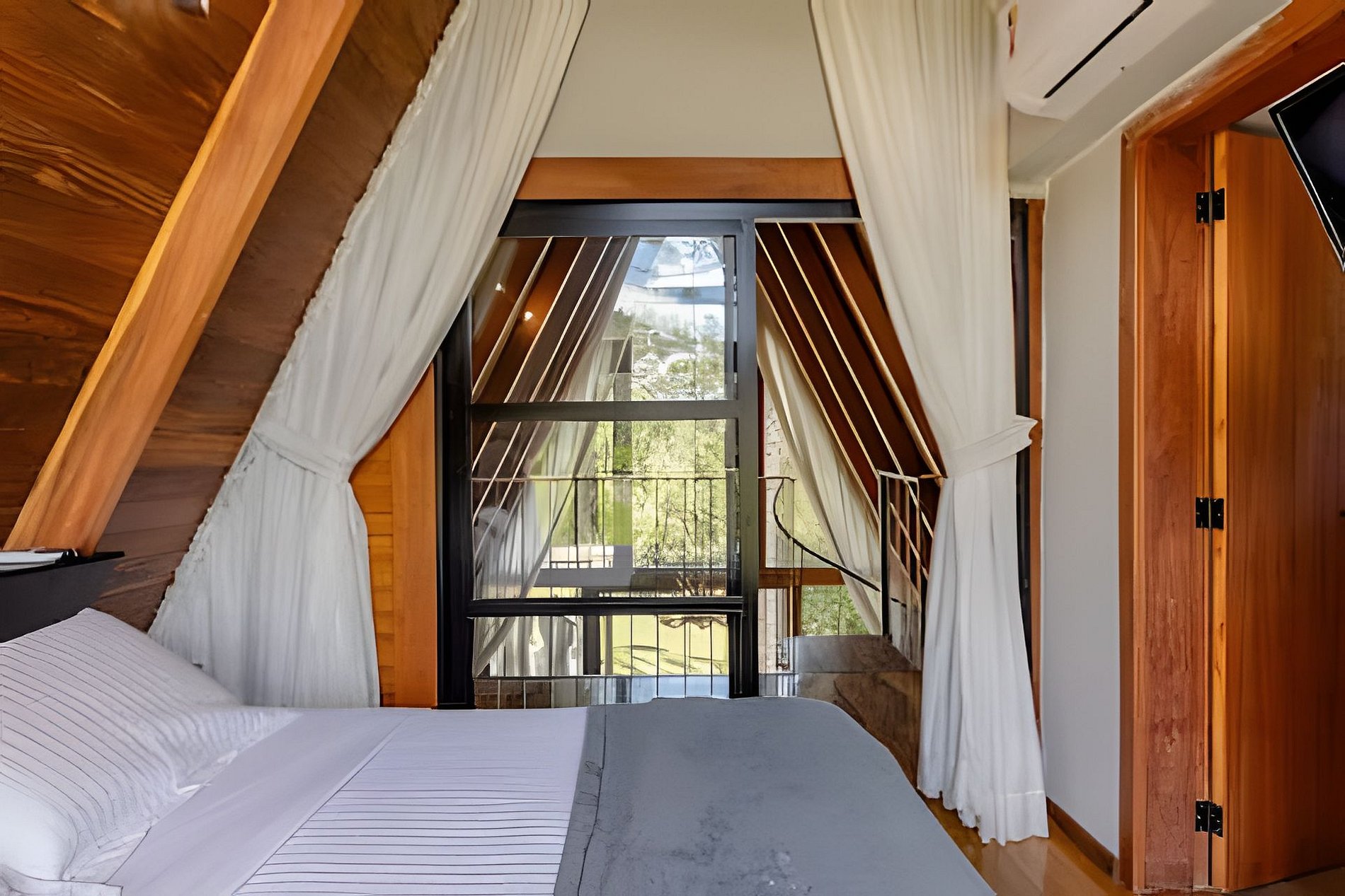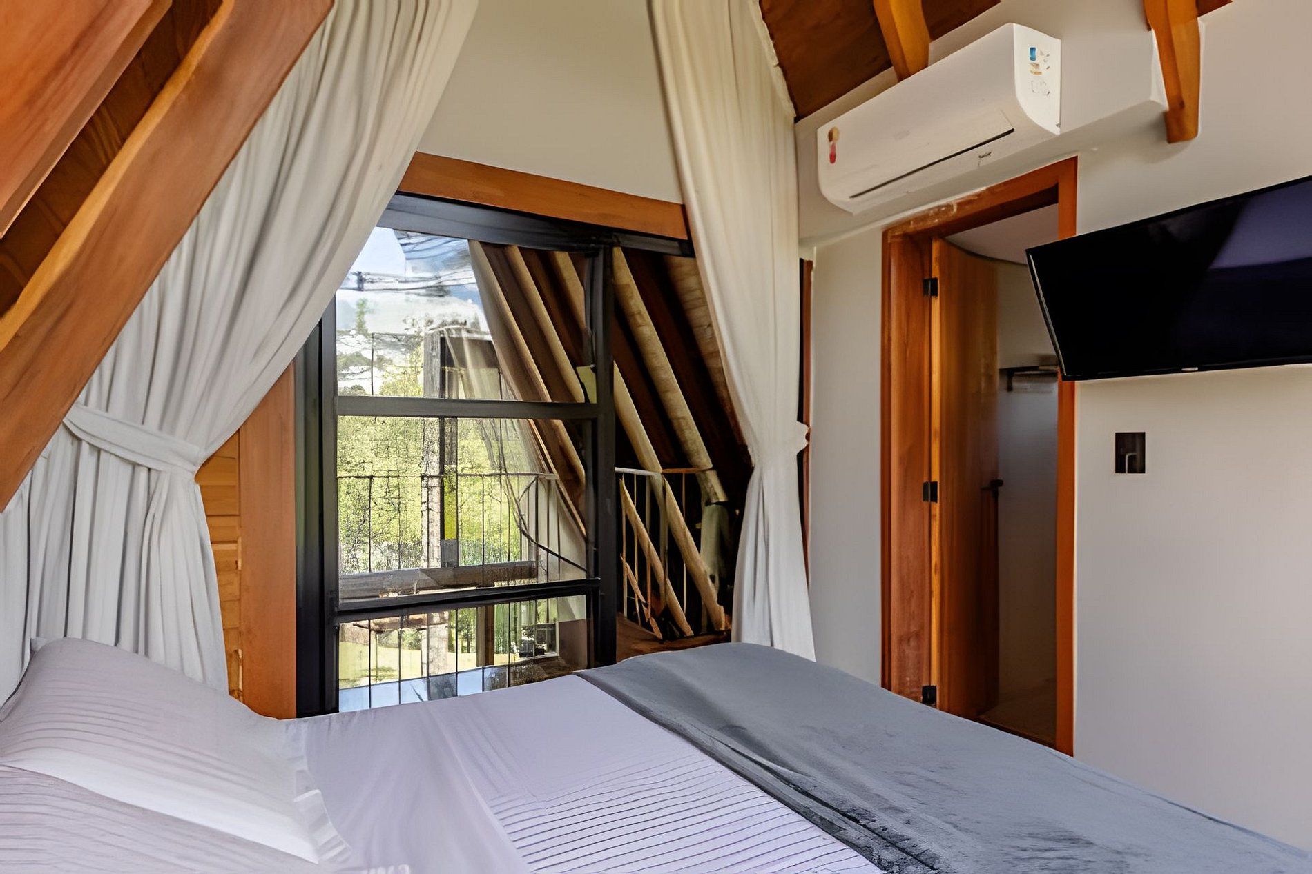 - 1 Quarto com cama de casal, cortina, TV e ar-condicionado;