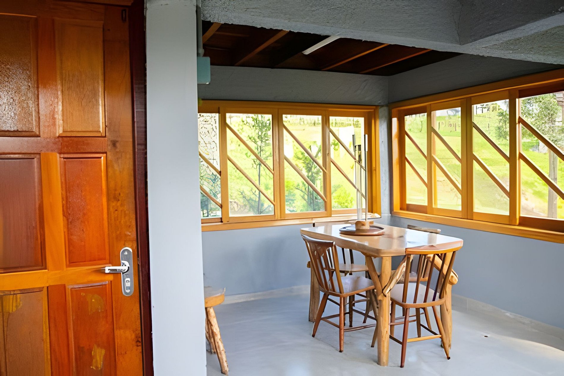 - Cada chalé conta com dois quartos, ambos com vista para a natureza - Oferecemos roupa de cama e banho - Possui churrasqueira na parte inferior e fogo de chão - A cozinha é bem completa com todos os utensílios domésticos - O café da manhã é a parte - Está localizado em anexo ao rancho da montanha que possuiu muita diversão como passeios a cavalo e quadriciclo