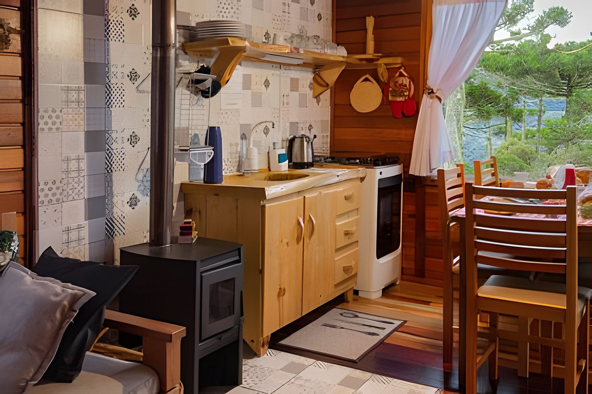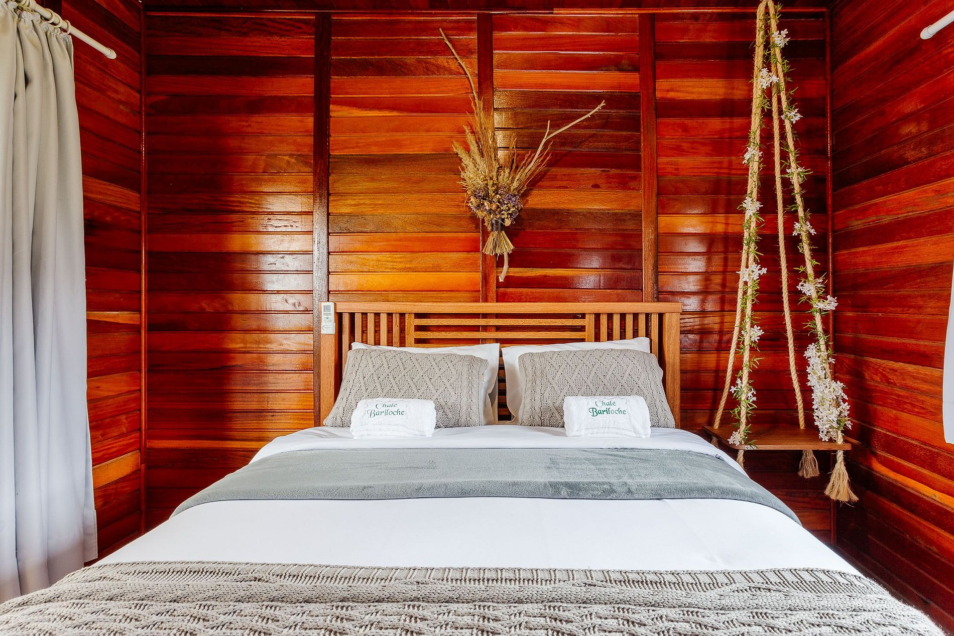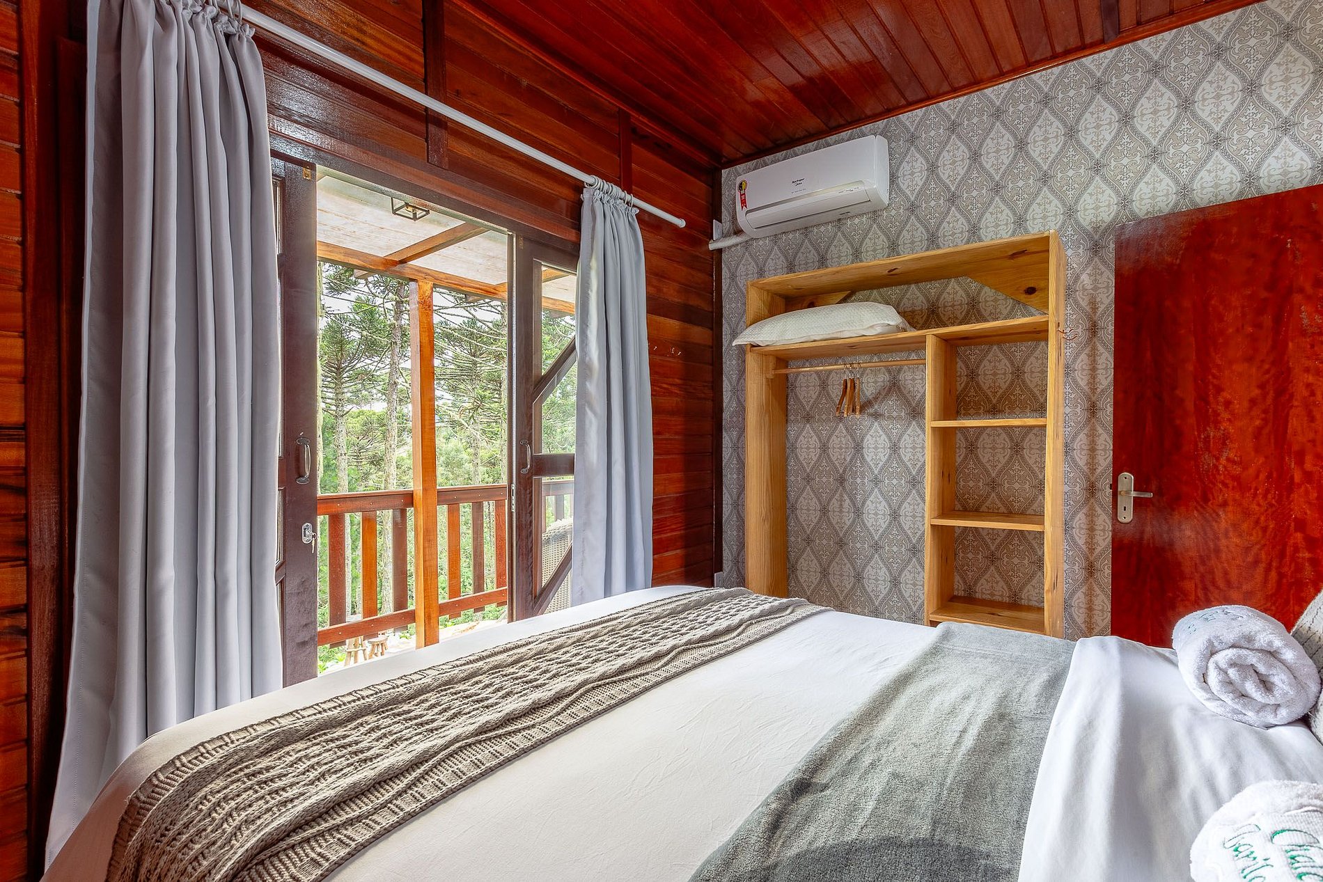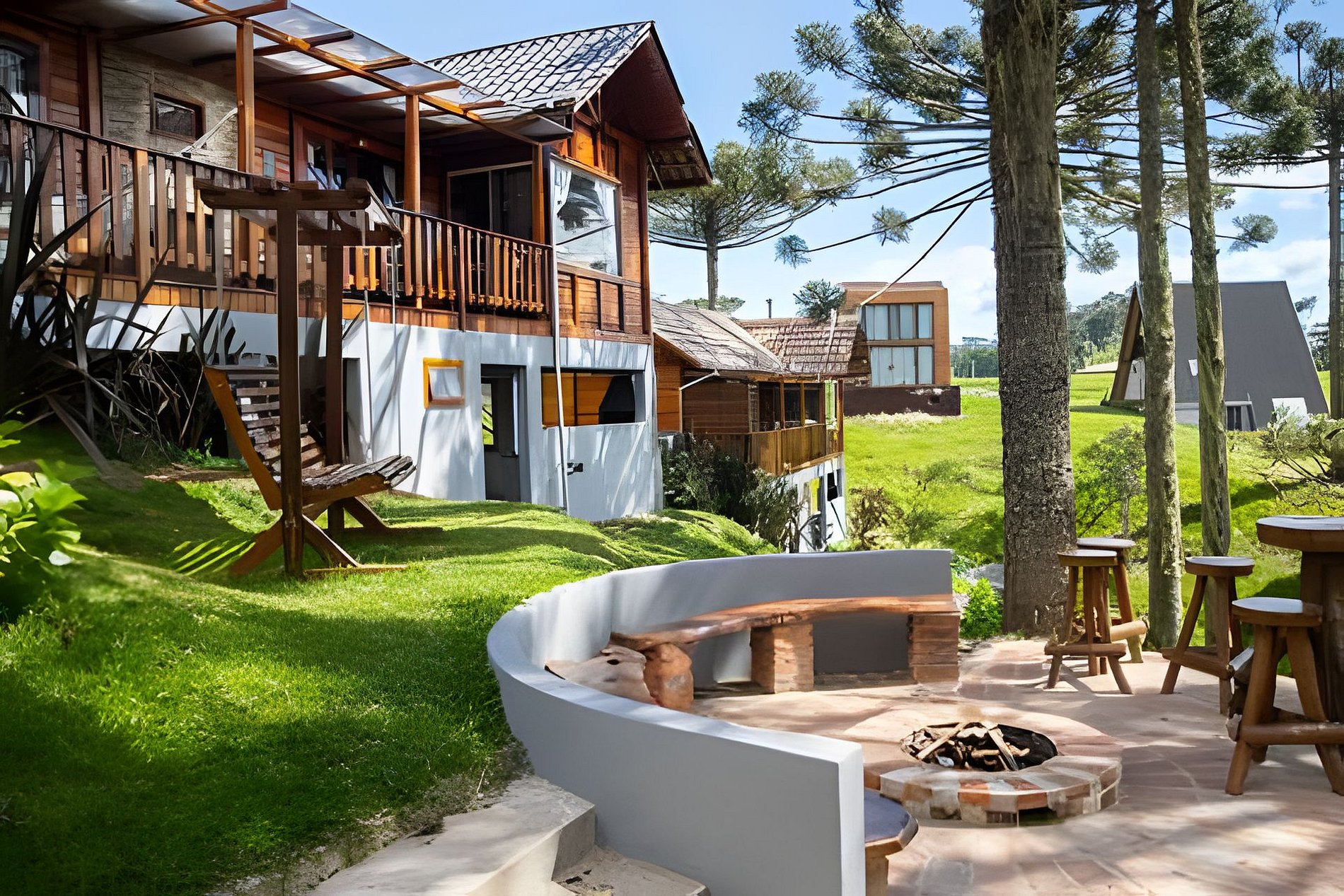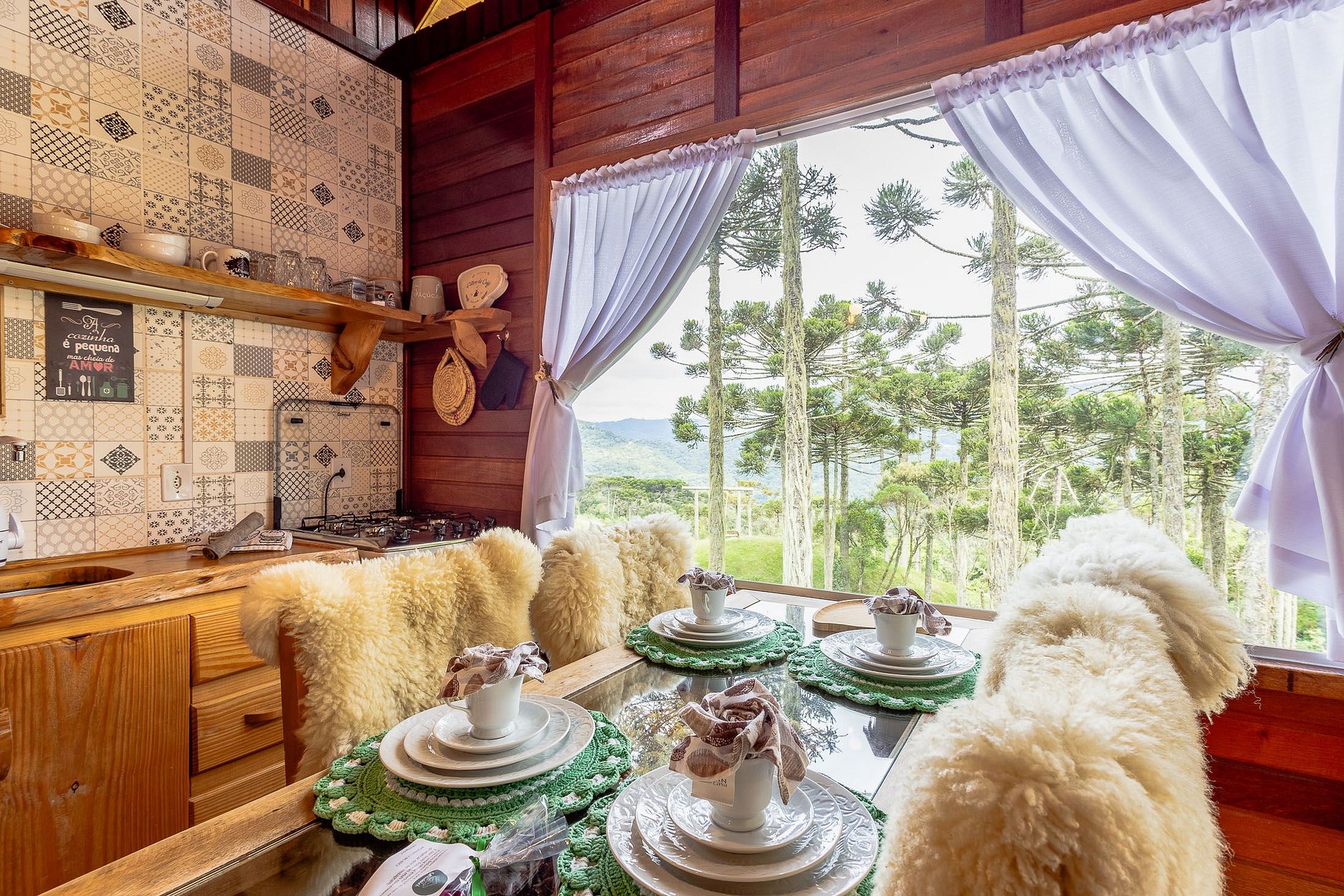 - O Chalé conta com dois quartos, ambos com vista para a natureza, churrasqueira na parte inferior e fogo de chão.