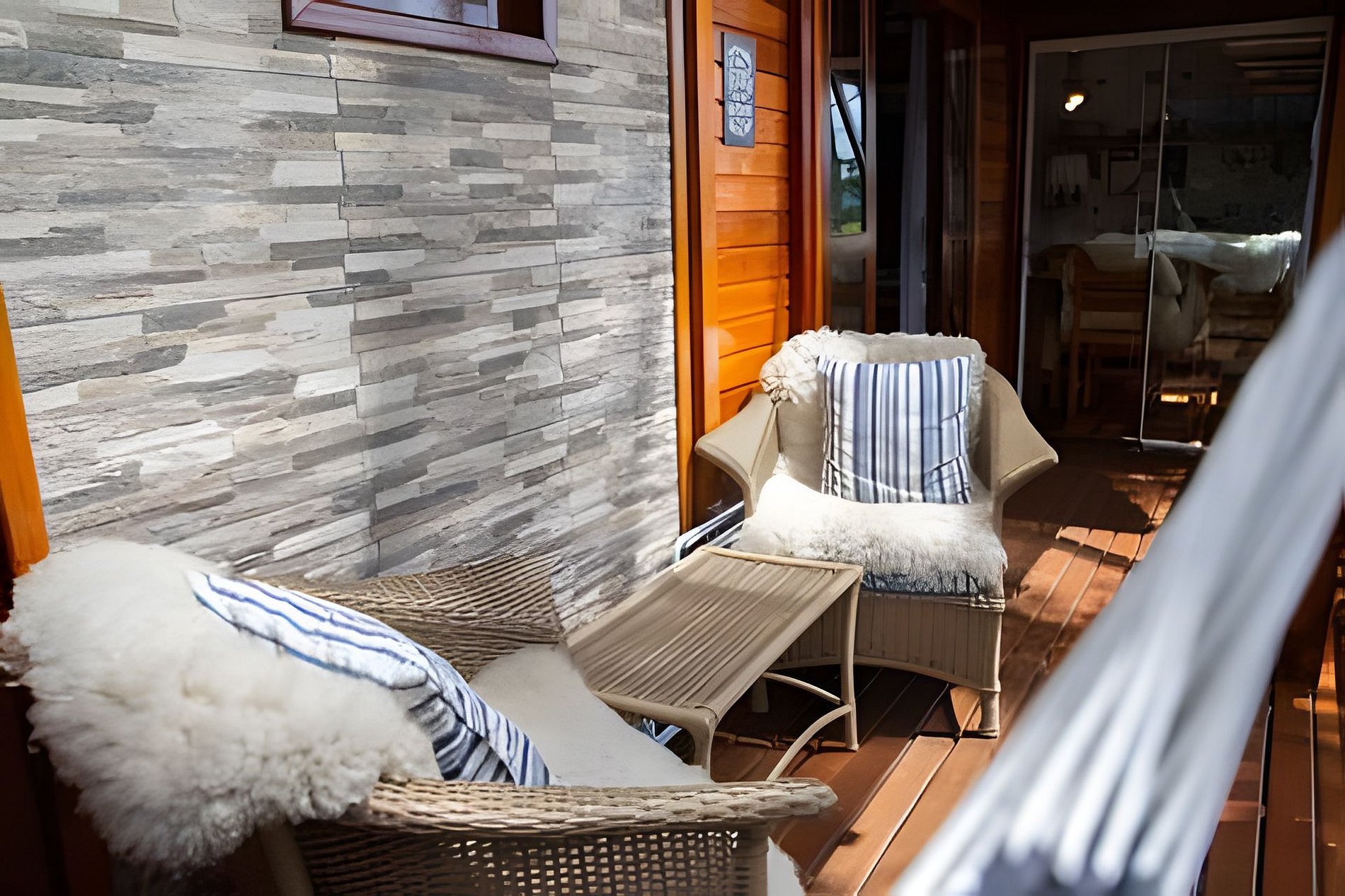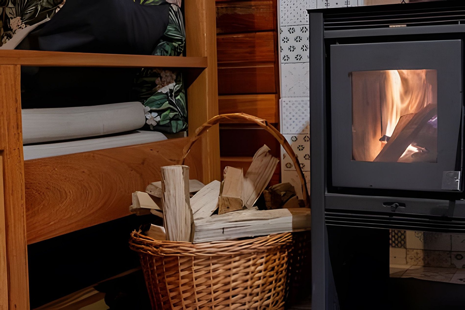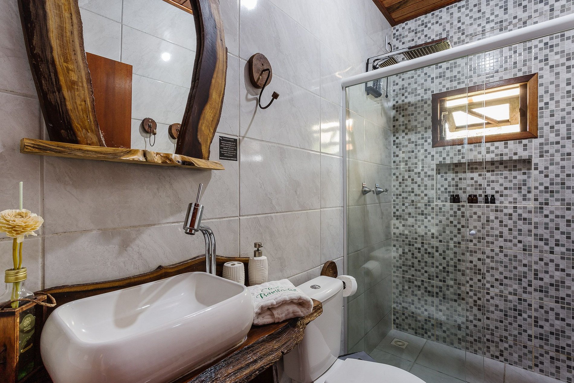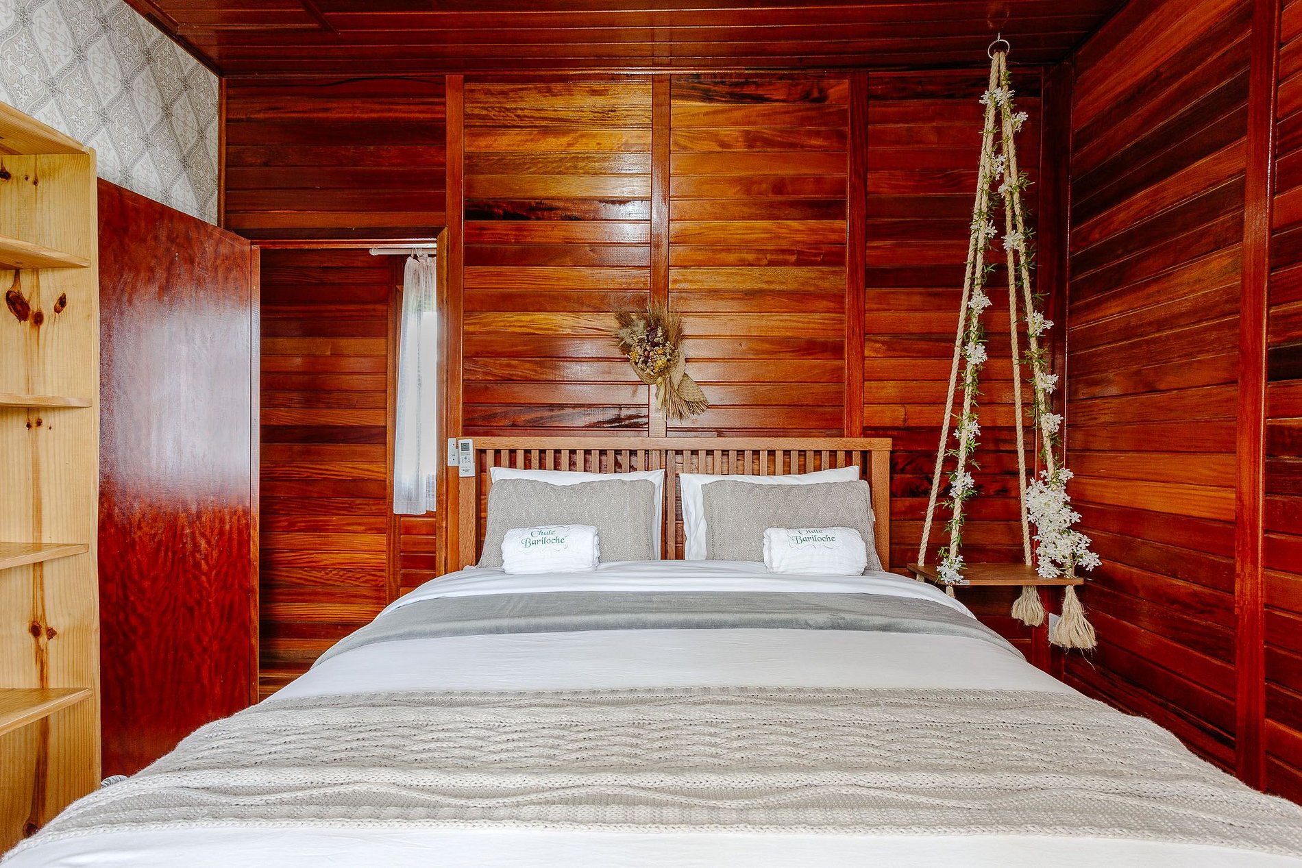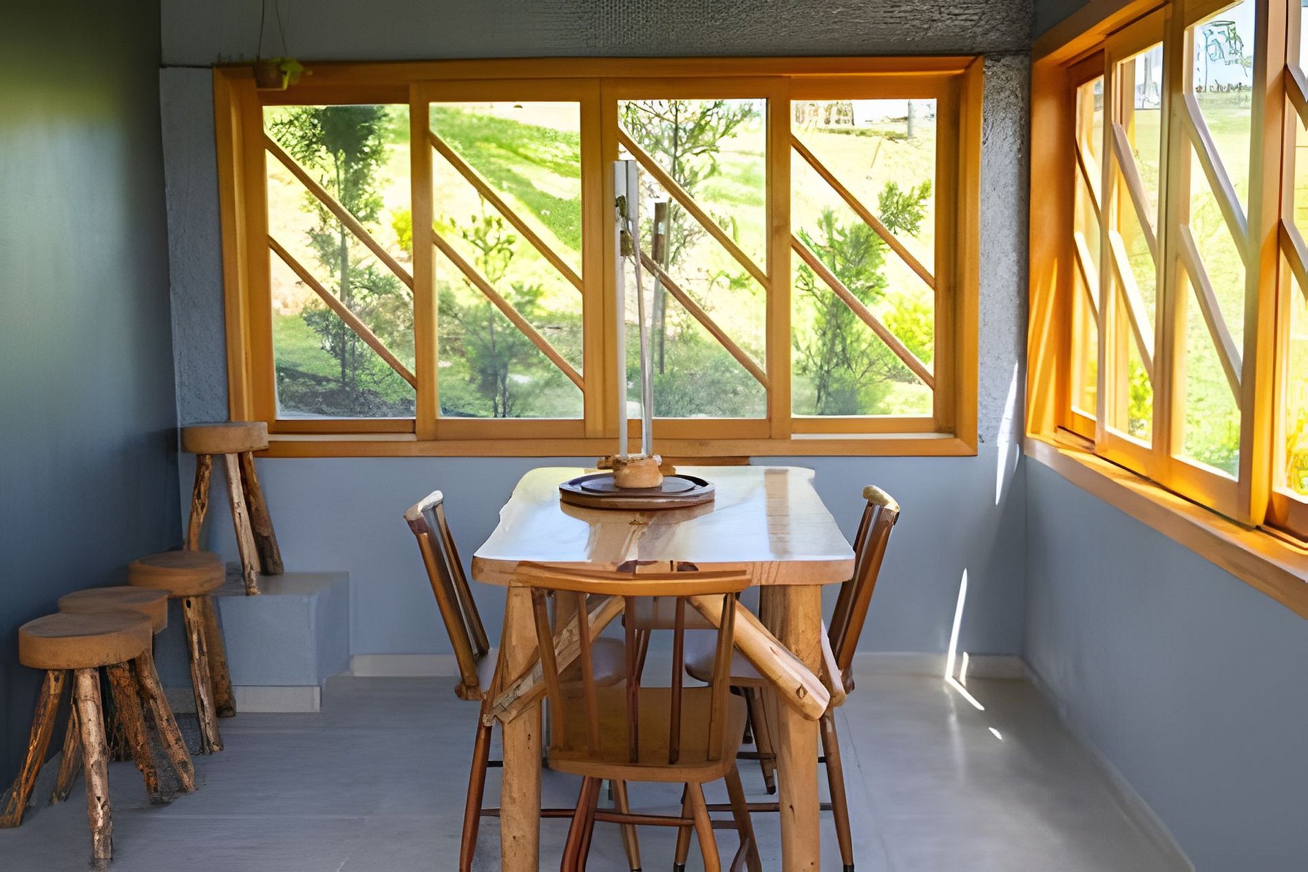 - O Chalé conta com dois quartos, ambos com vista para a natureza, churrasqueira na parte inferior e fogo de chão.