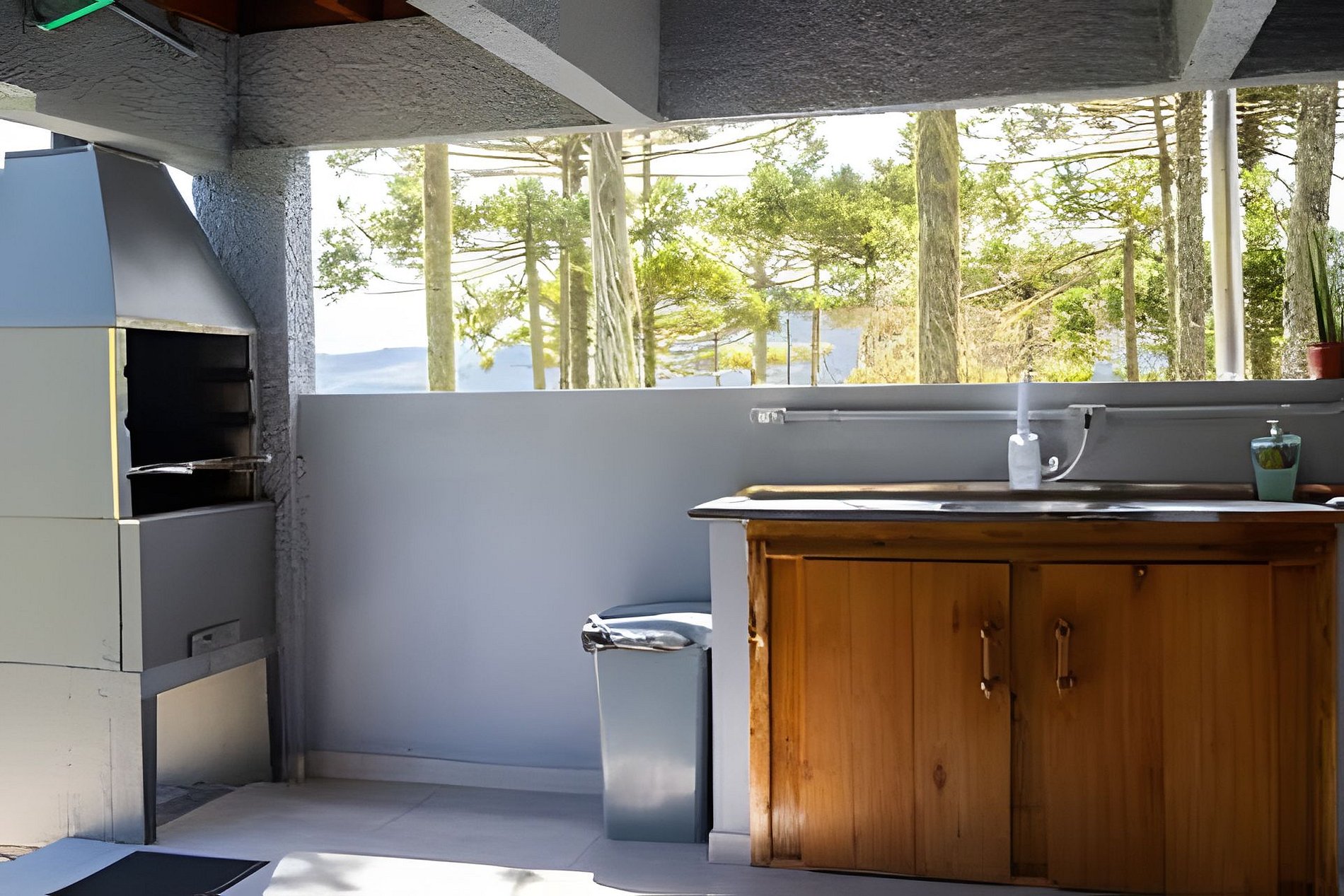 - Churrasqueira na parte inferior e fogo de chão.