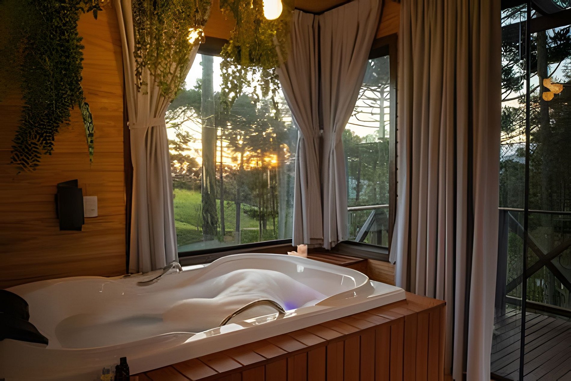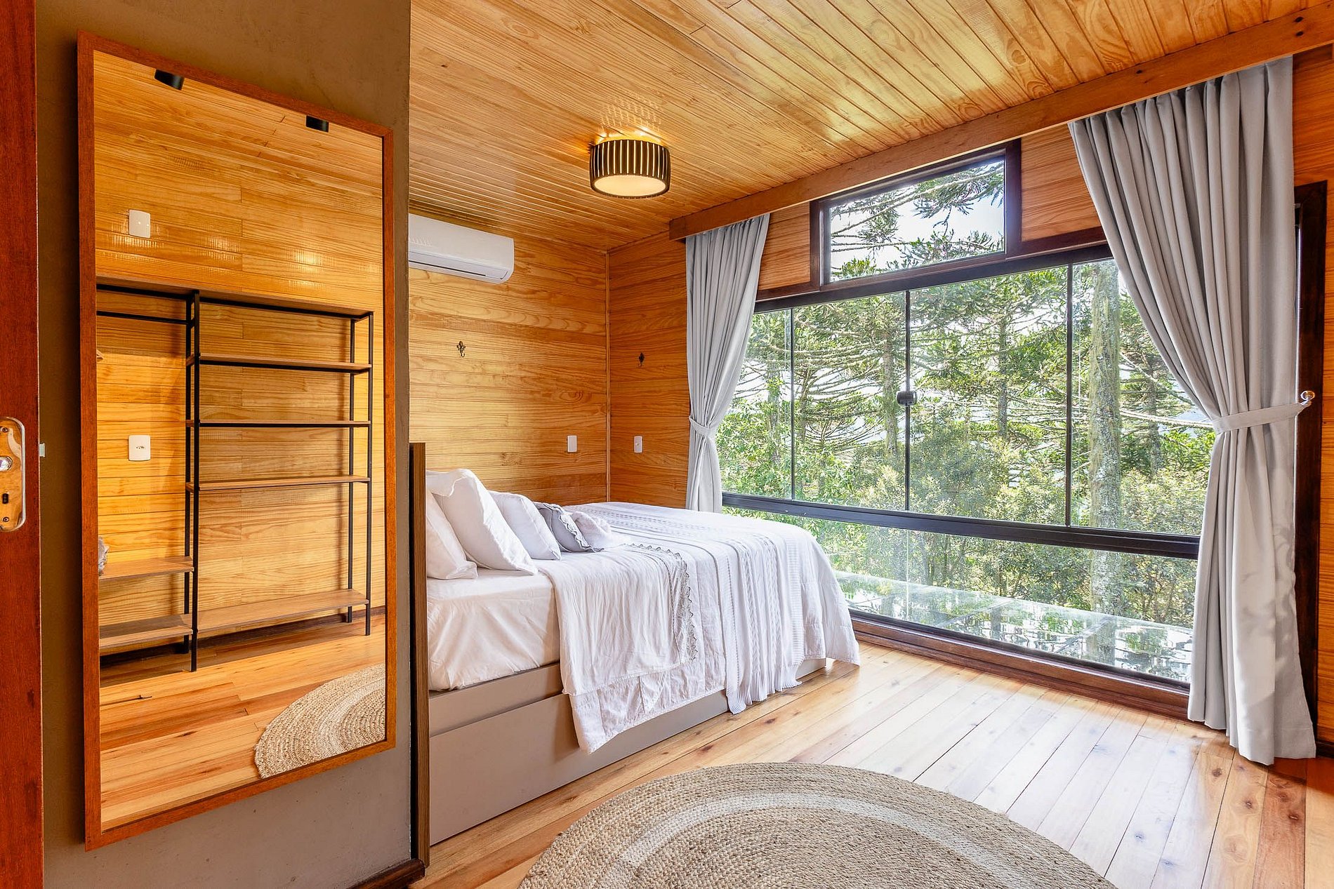 O chalé O canto da Araponga foi criado para você aproveitar um lugar elegante e sofisticado com as belas paisagens de Urubici. O chalé possuiu uma ampla cozinha com teto de vidro para você apreciar as paisagens das araucárias e estrelas. Aproveite a banheira com cromoterapia para relaxar. O espaço interior é totalmente otimizado, todos os cômodos são bem amplos com uma iluminação que irá te surpreender.