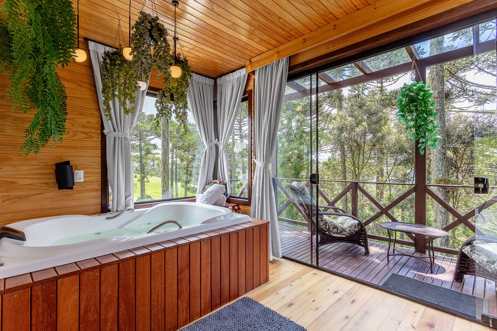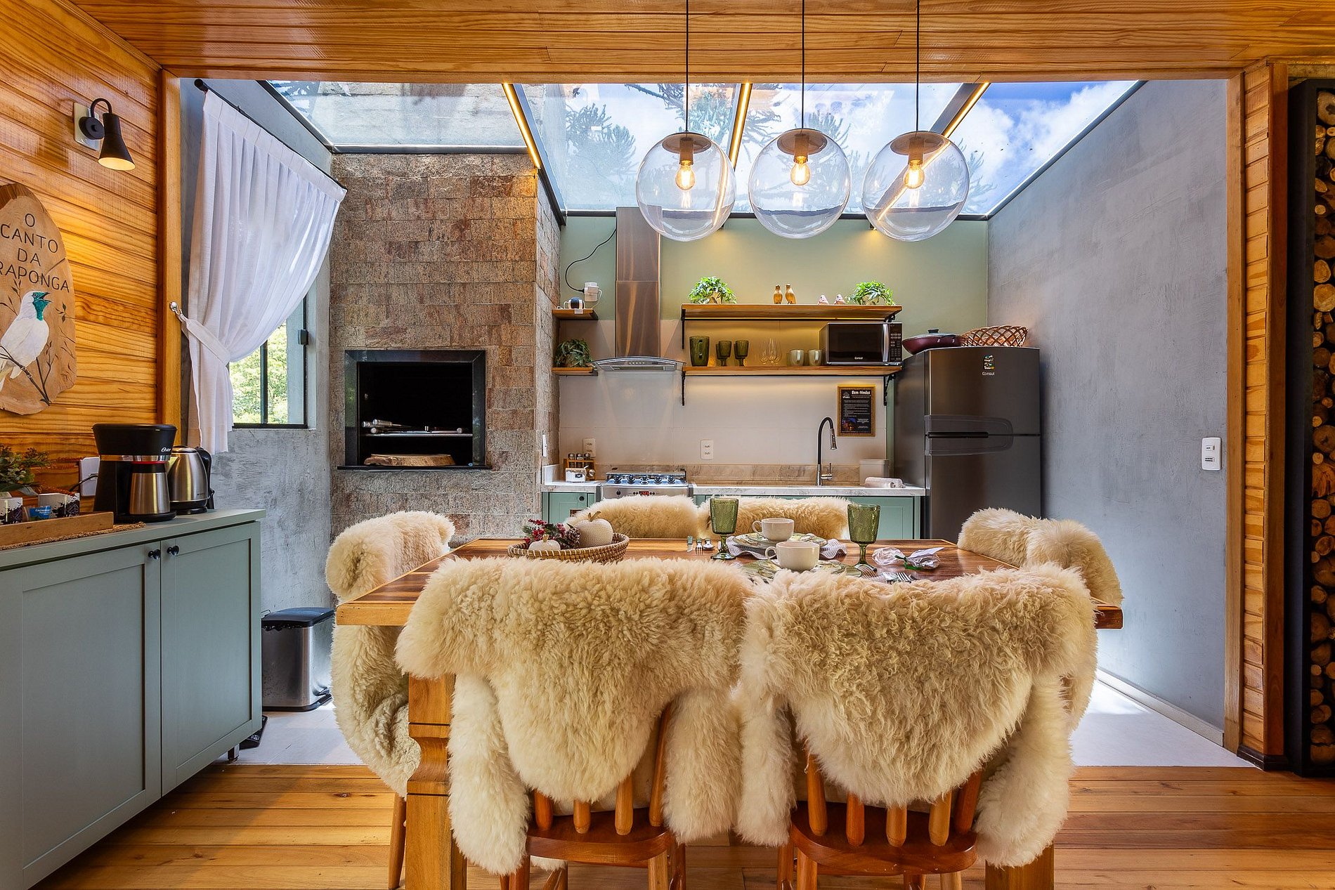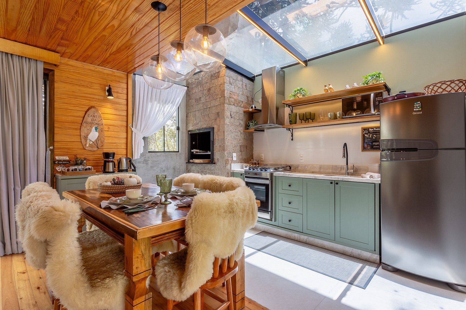 O chalé O canto da Araponga foi criado para você aproveitar um lugar elegante e sofisticado com as belas paisagens de Urubici. O chalé possuiu uma ampla cozinha com teto de vidro para você apreciar as paisagens das araucárias e estrelas. Aproveite a banheira com cromoterapia para relaxar. O espaço interior é totalmente otimizado, todos os cômodos são bem amplos com uma iluminação que irá te surpreender.