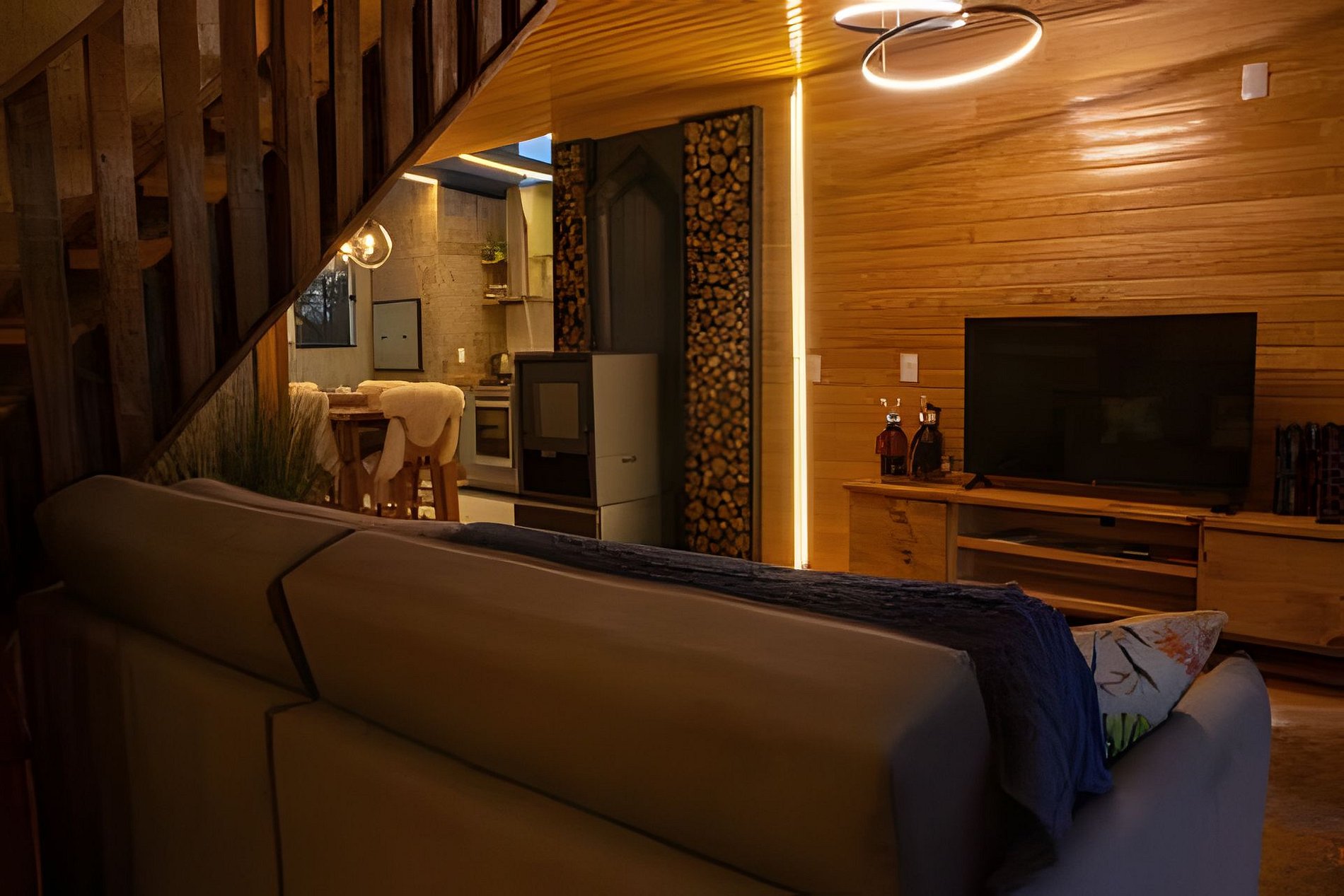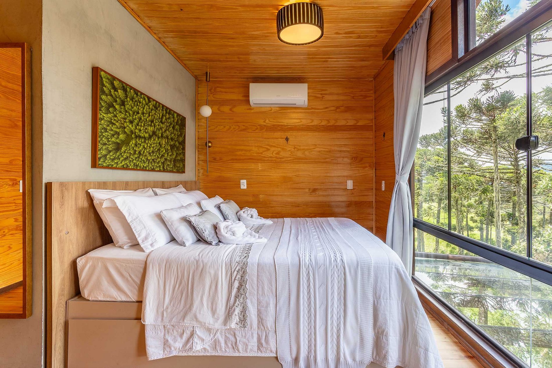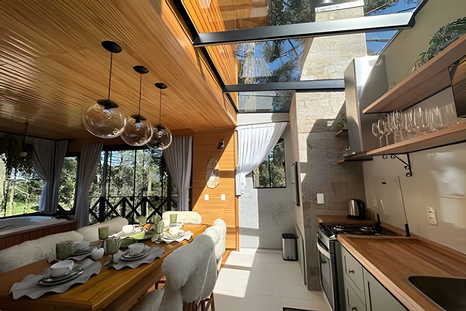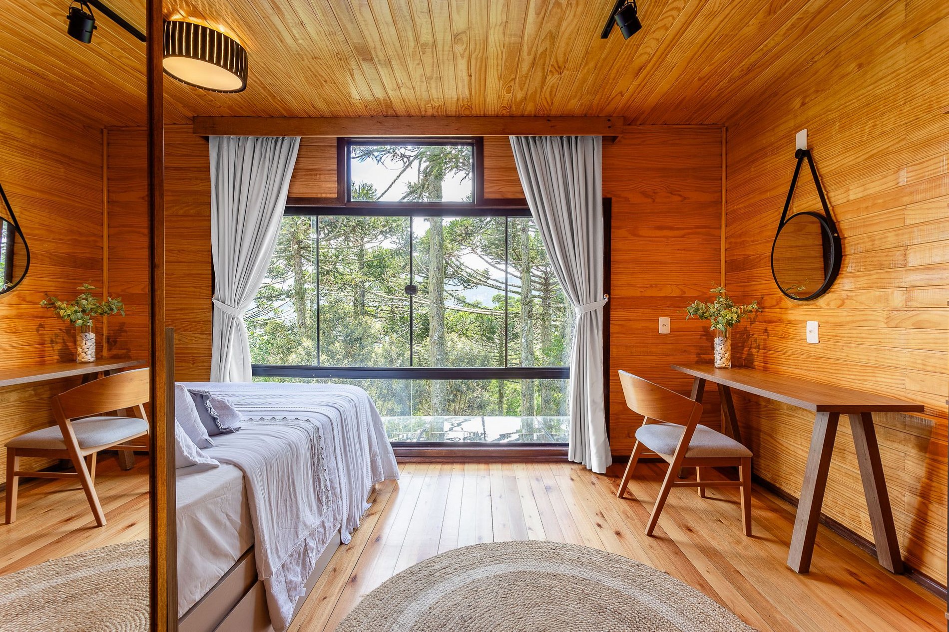 O chalé O canto da Araponga foi criado para você aproveitar um lugar elegante e sofisticado com as belas paisagens de Urubici. O chalé possuiu uma ampla cozinha com teto de vidro para você apreciar as paisagens das araucárias e estrelas. Aproveite a banheira com cromoterapia para relaxar. O espaço interior é totalmente otimizado, todos os cômodos são bem amplos com uma iluminação que irá te surpreender.