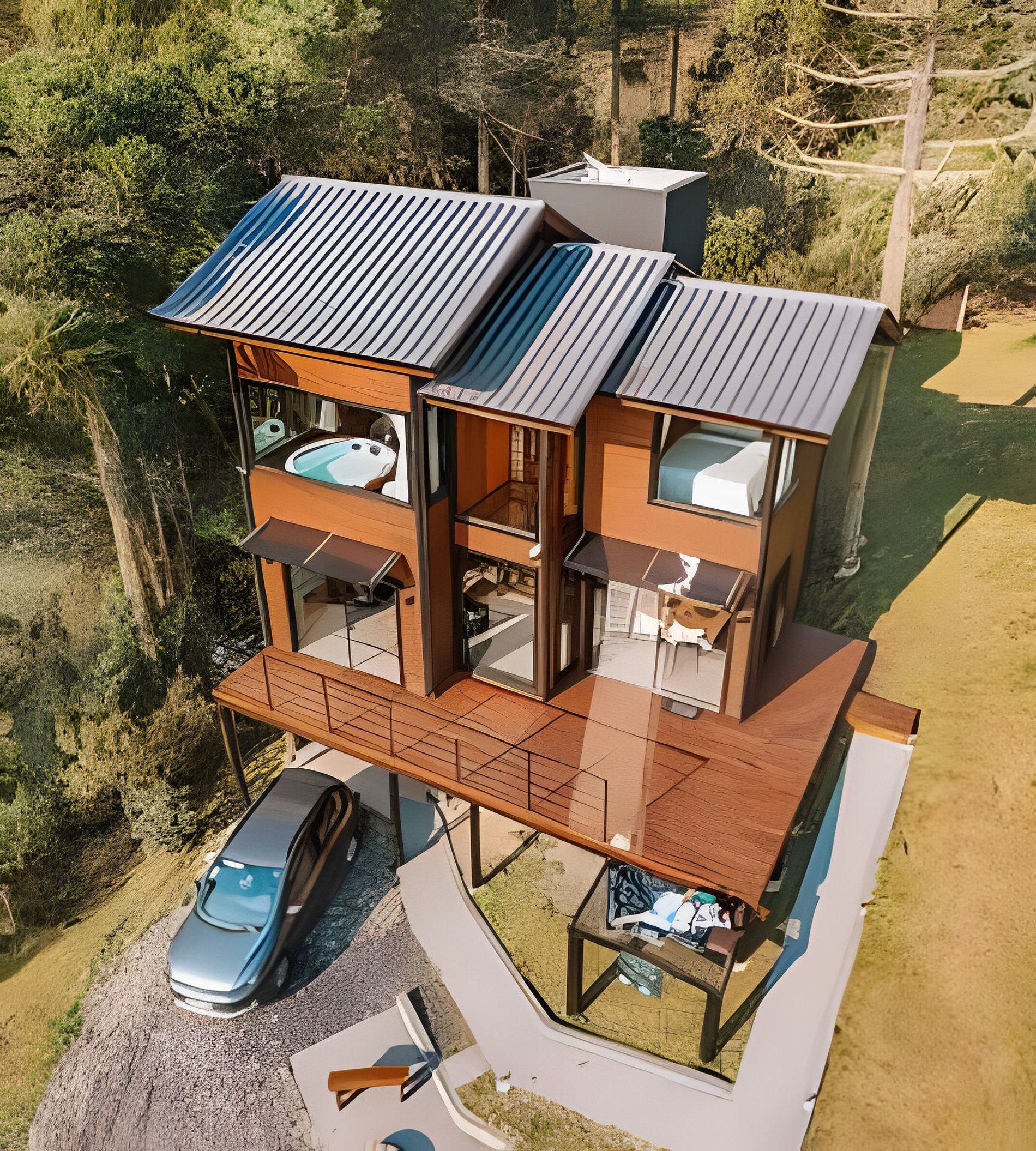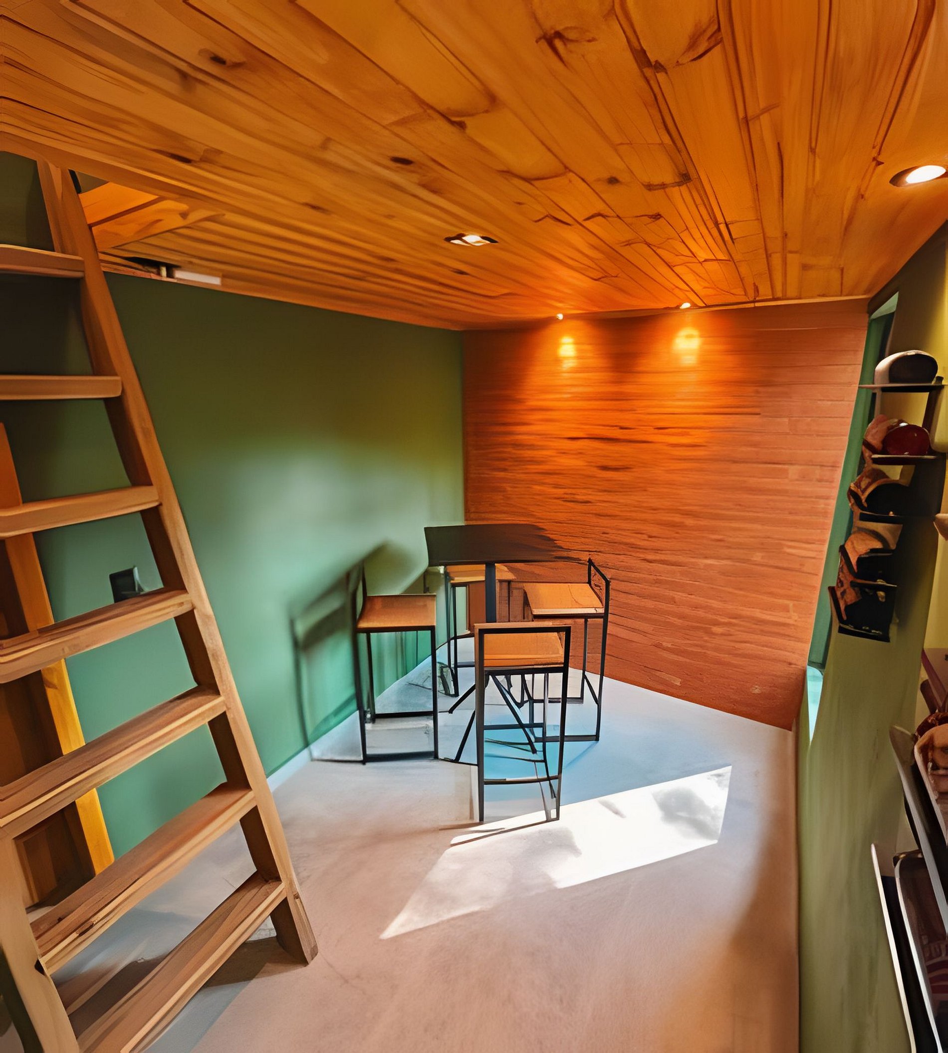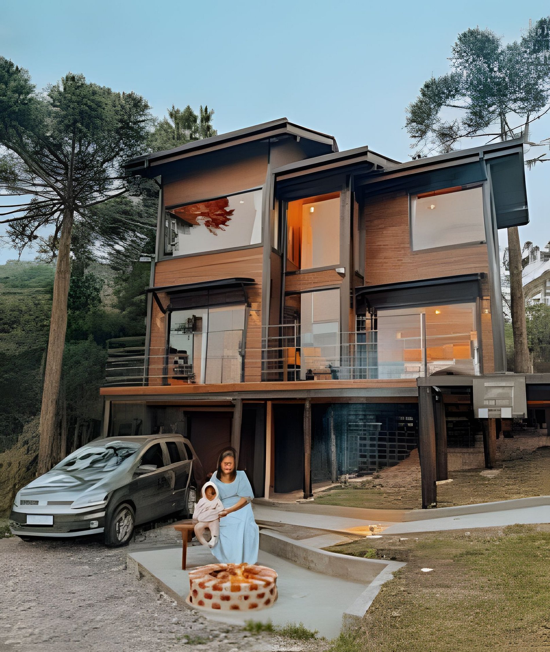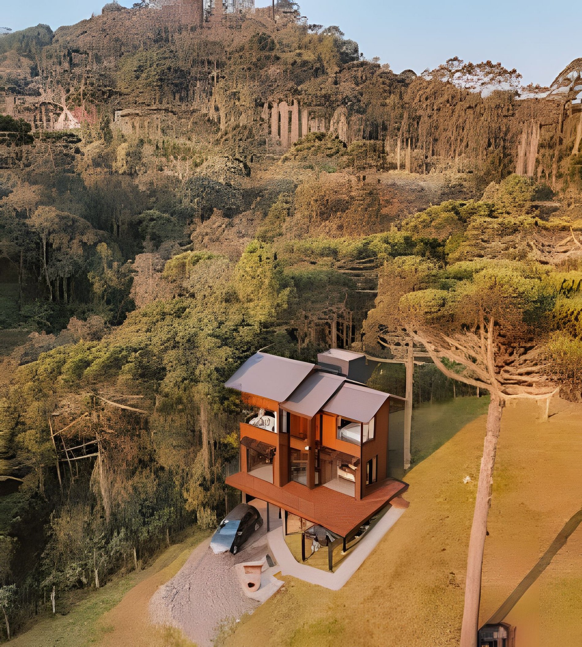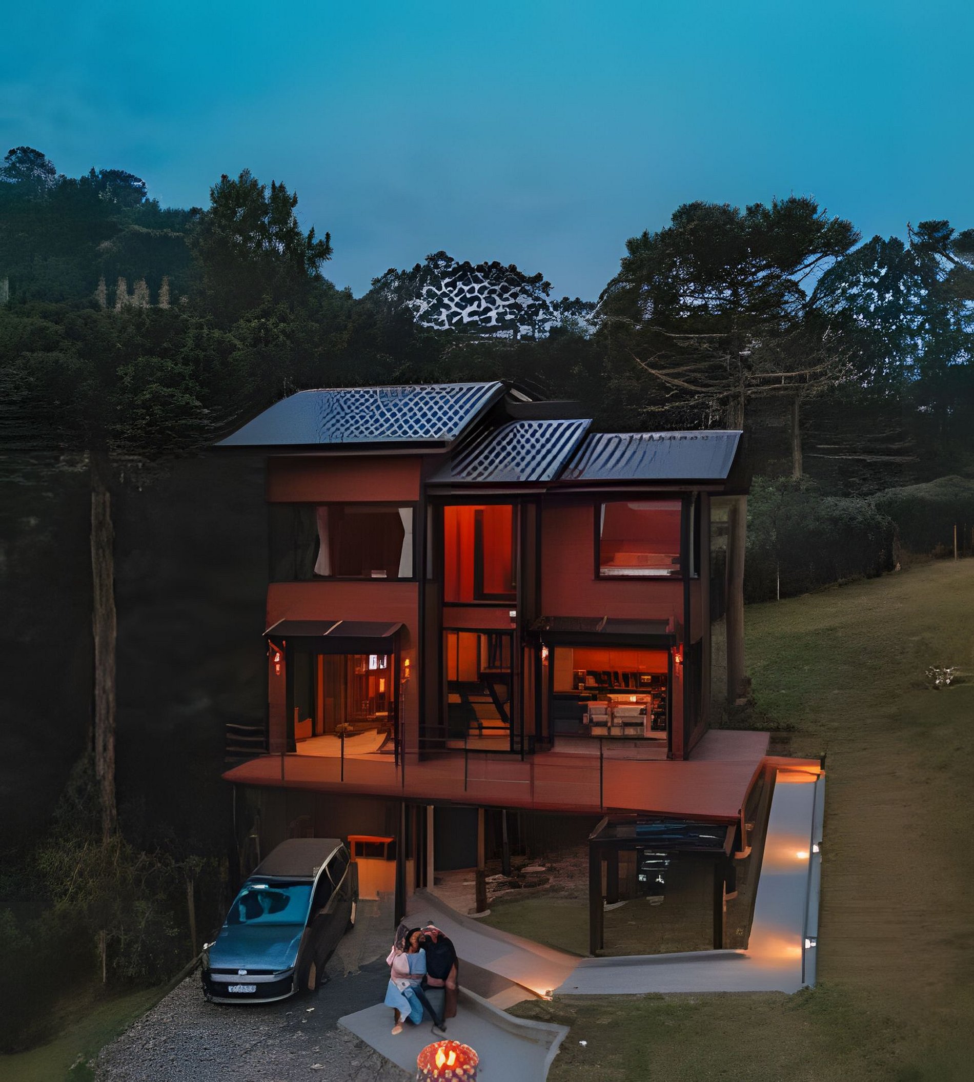 A cabana está localiza em uma área privilegiada rodeada de araucárias e de fácil acesso a qualquer automóvel. A propriedade possui 2 mil m² e é composta por gramados, árvores, um balanço e outros chalés. Os hóspedes podem circular livremente por toda a propriedade, utilizar o balanço e fazer piqueniques no gramado contemplando o pôr do sol.