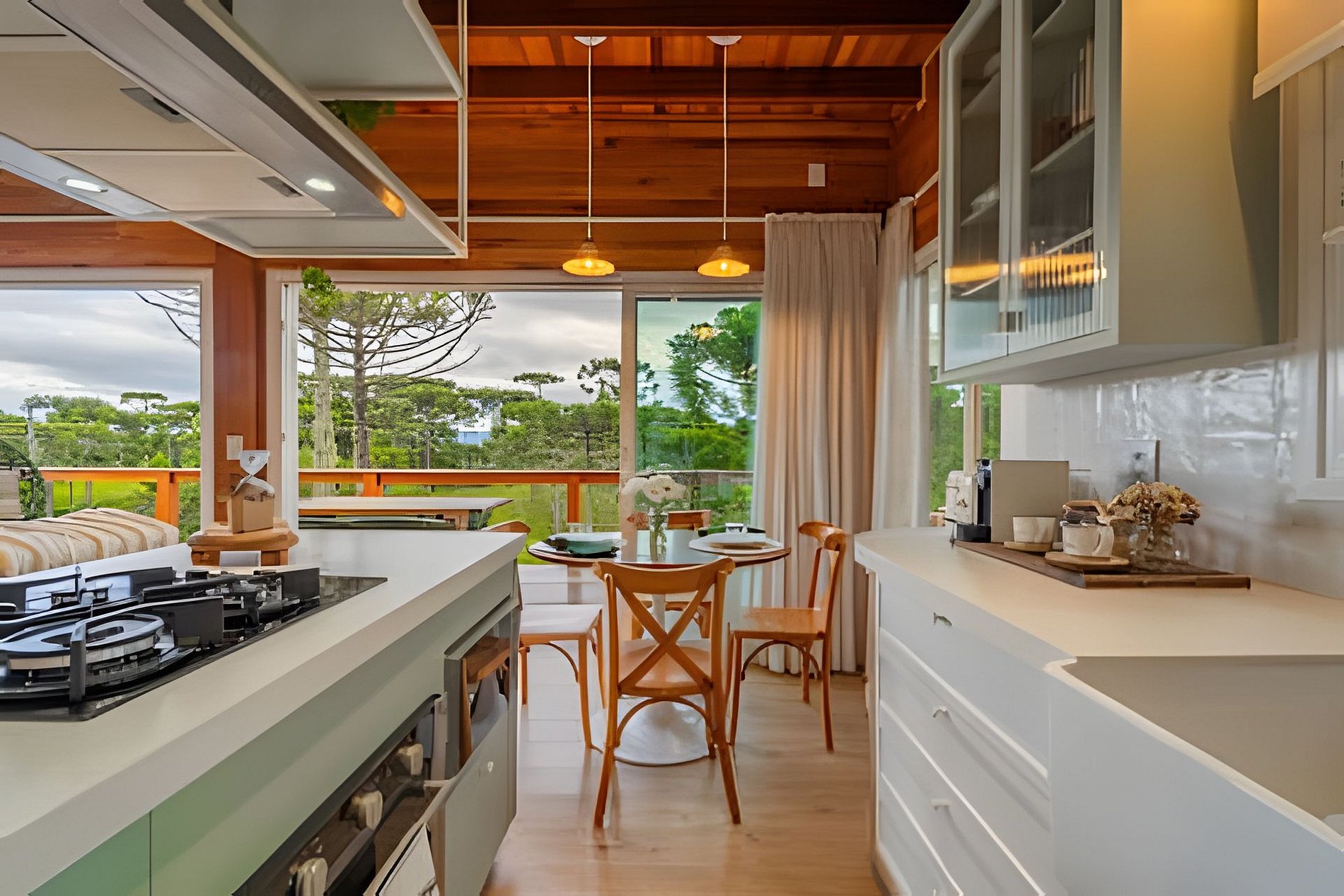 - Cozinha completa com geladeira, fogão cooktop 4 bocas a gás, forno elétrico, micro-ondas, adega climatizada, sanduicheira, torradeira elétrica, chaleira elétrica, cafeteira Nespresso, liquidificador, aparelho de Fondue elétrico, taças de vinho, panelas, louças e utensílios;