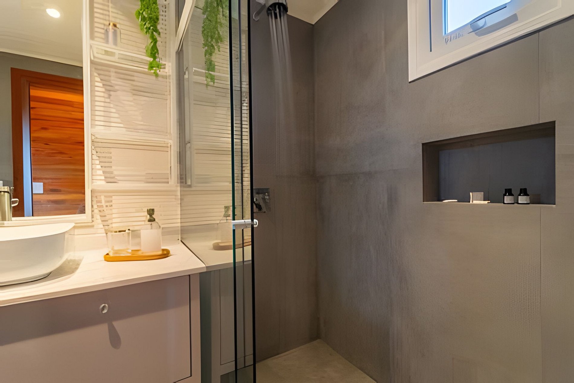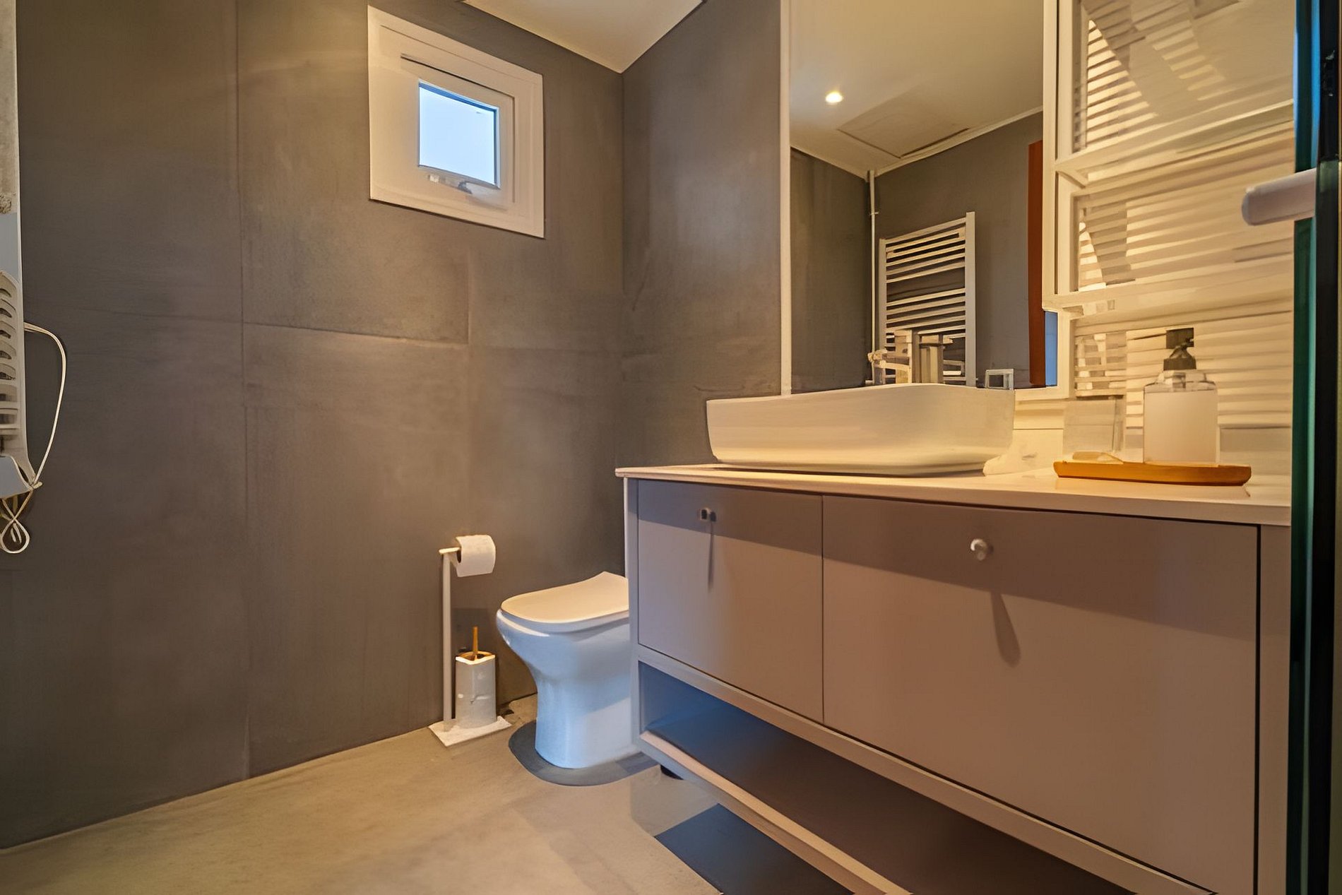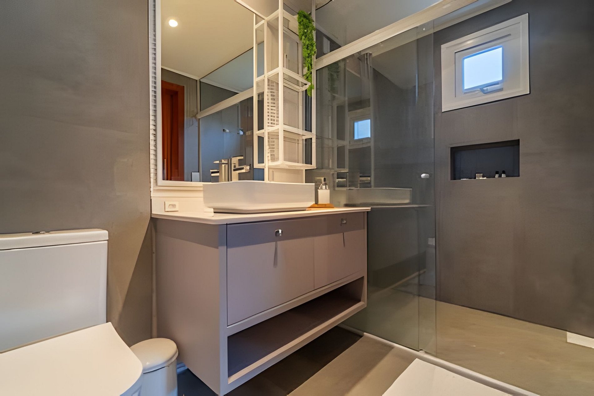 - 01 Banheiro amplo com piso aquecido, toalheiro elétrico, chuveiro com aquecimento à gás.